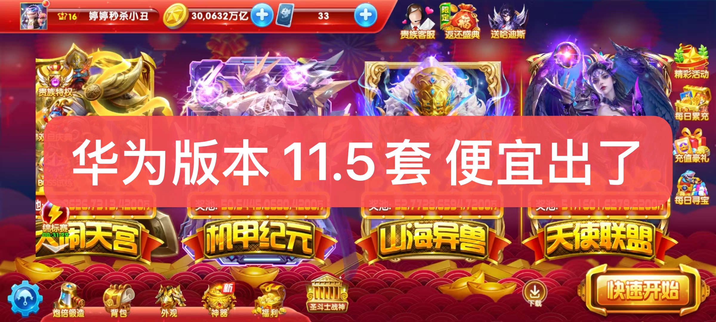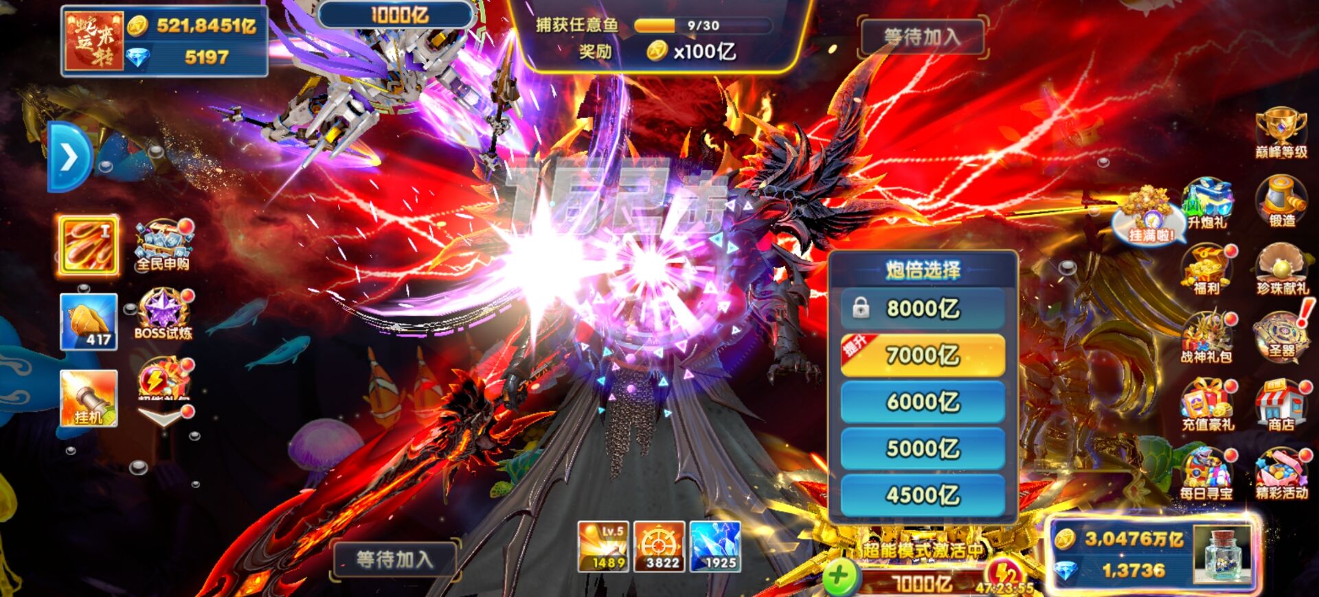 捕鱼大作战华为版时效70炮30000万亿支持换绑