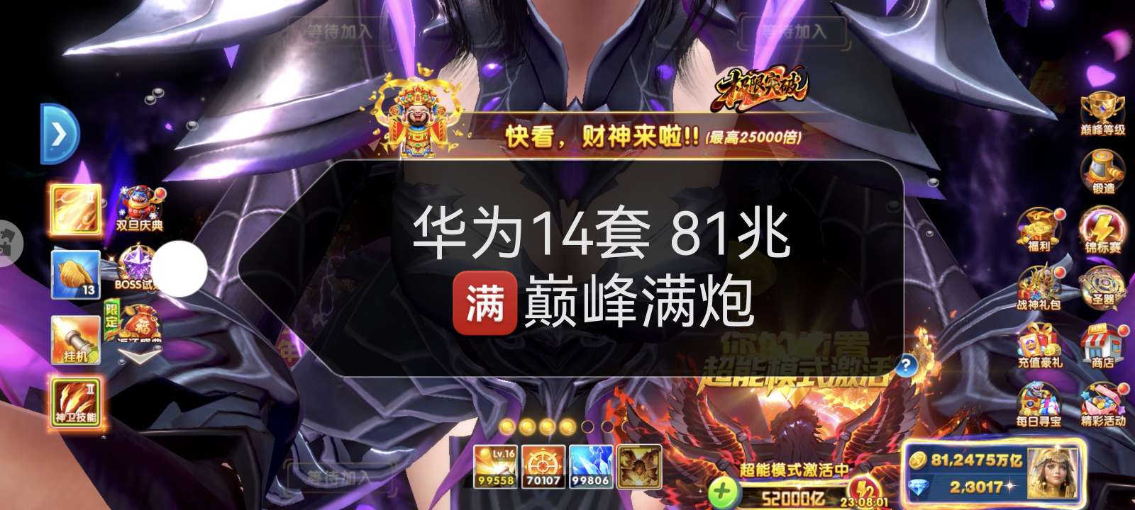 华为顶配全战神15套出分两百兆,今日充值
