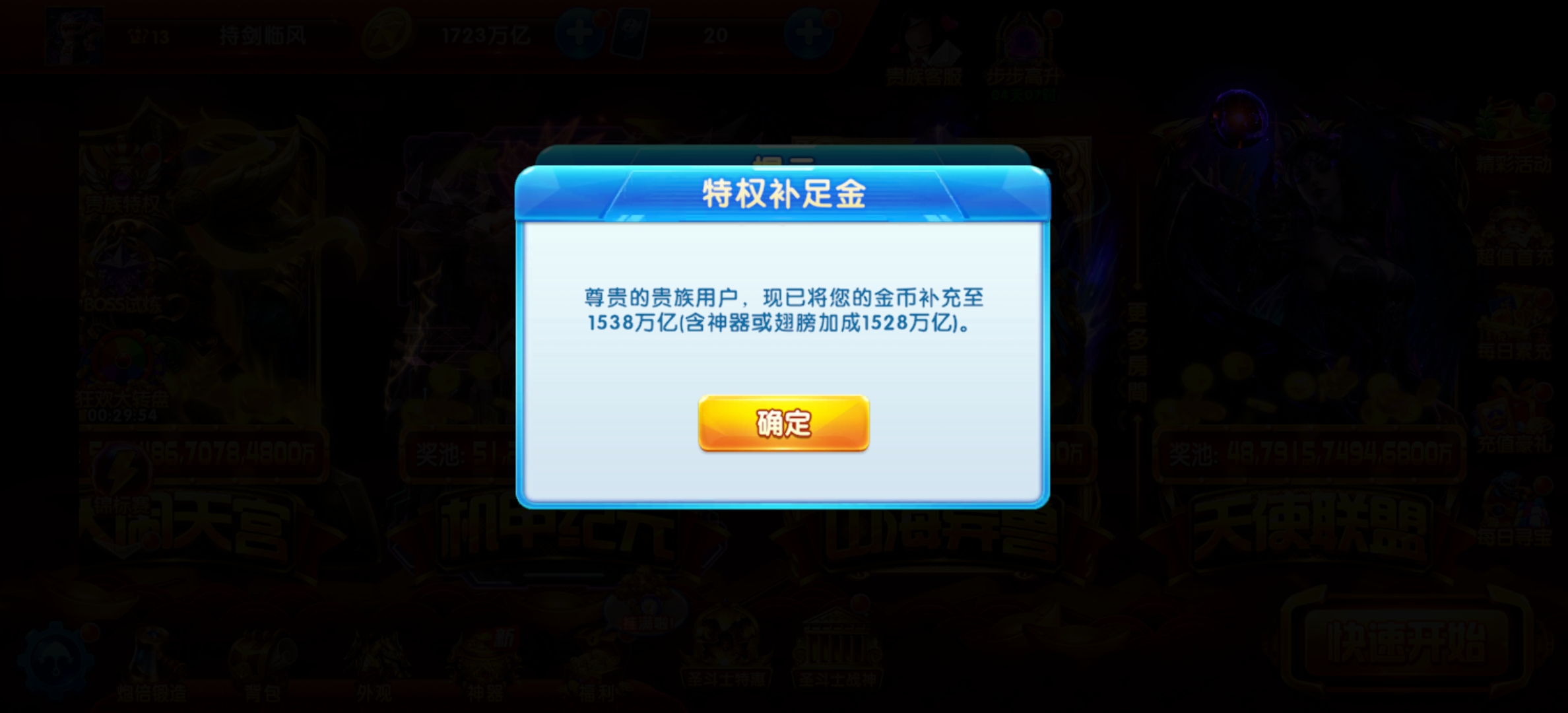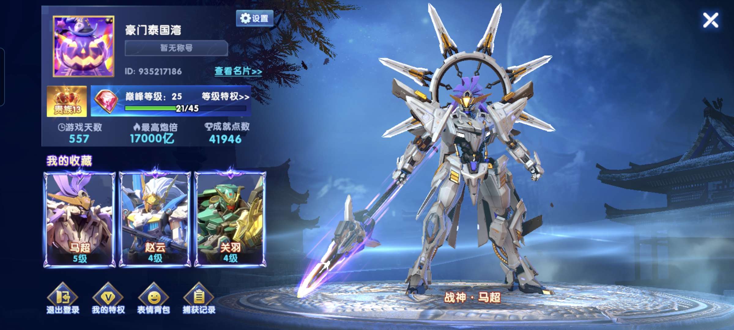 贵族13,雅典娜惊叹,机甲翻倍,爆发高,本人没时间玩,低价出售此号