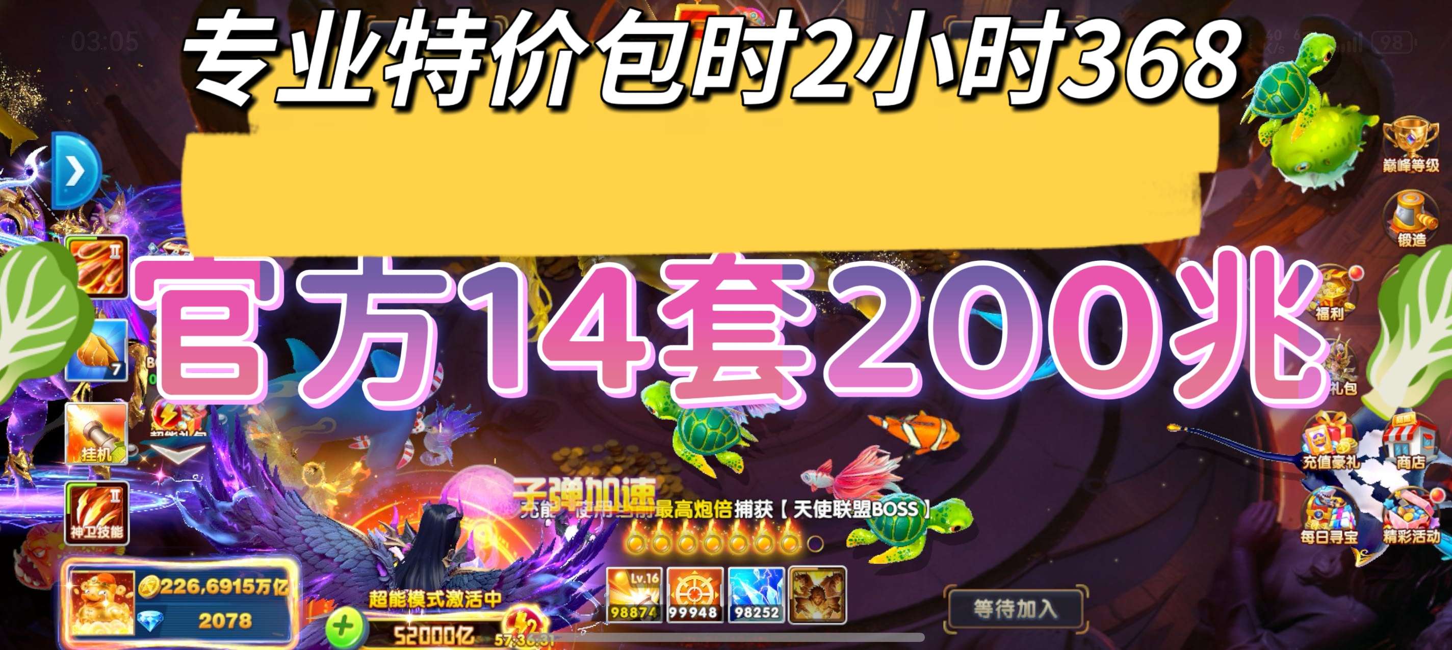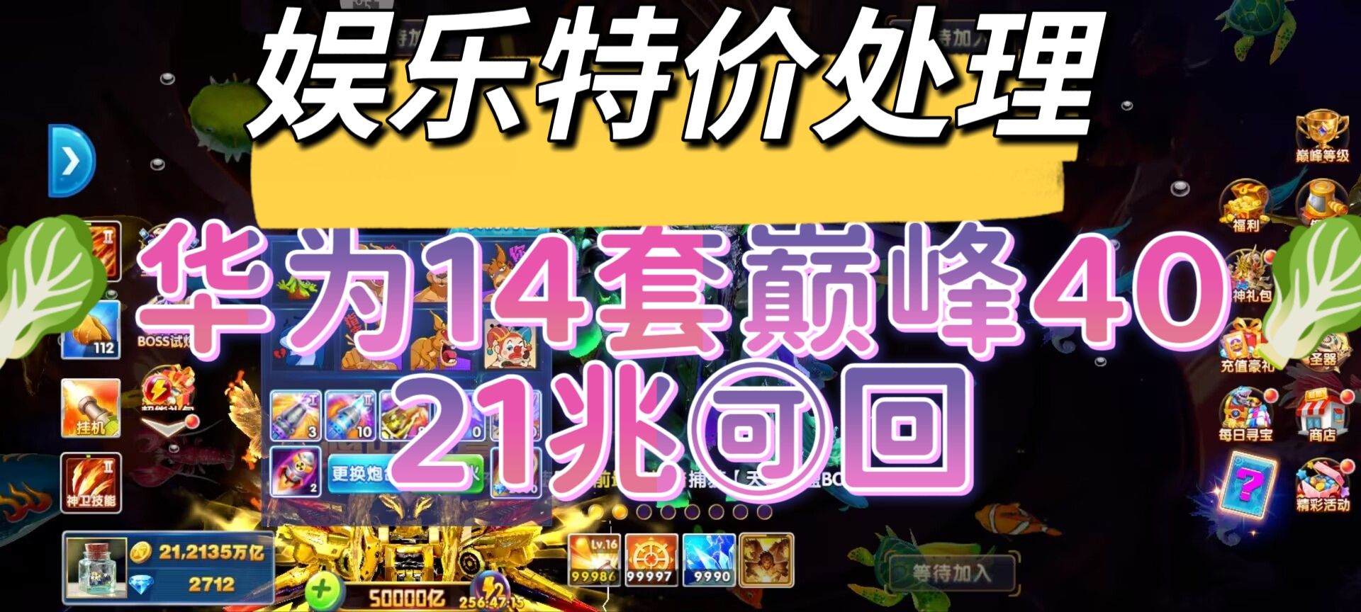 捕鱼大作战华为版时效70炮30000万亿支持换绑