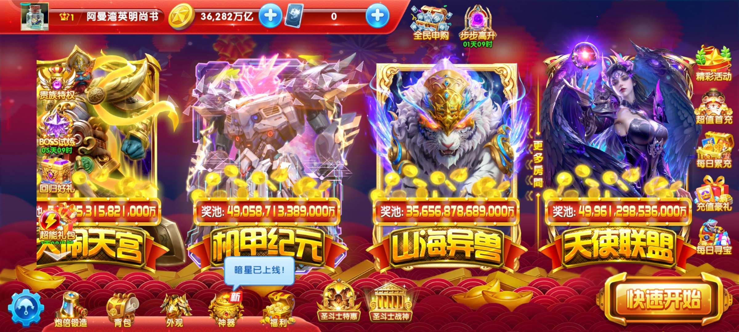 捕鱼大作战小米版本,原60亿炮,原版金币362万亿,巅峰10级,巨多boss未打!