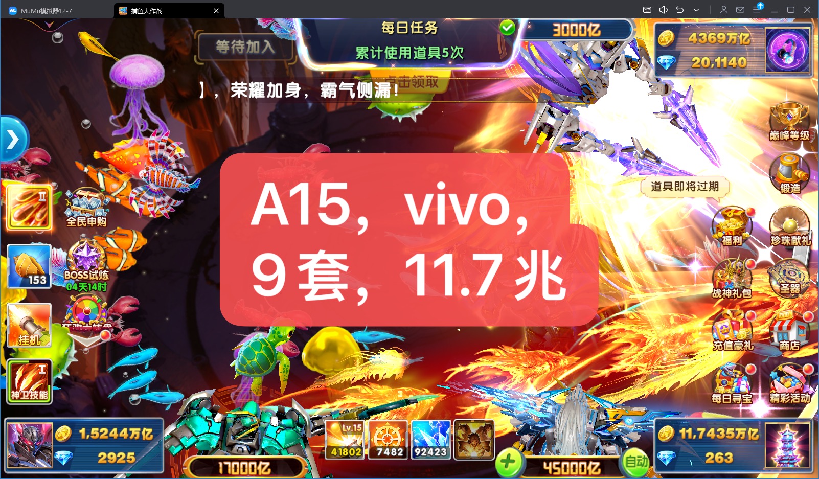 鱼大作战,vivo,A15,9套机甲,11.7兆
