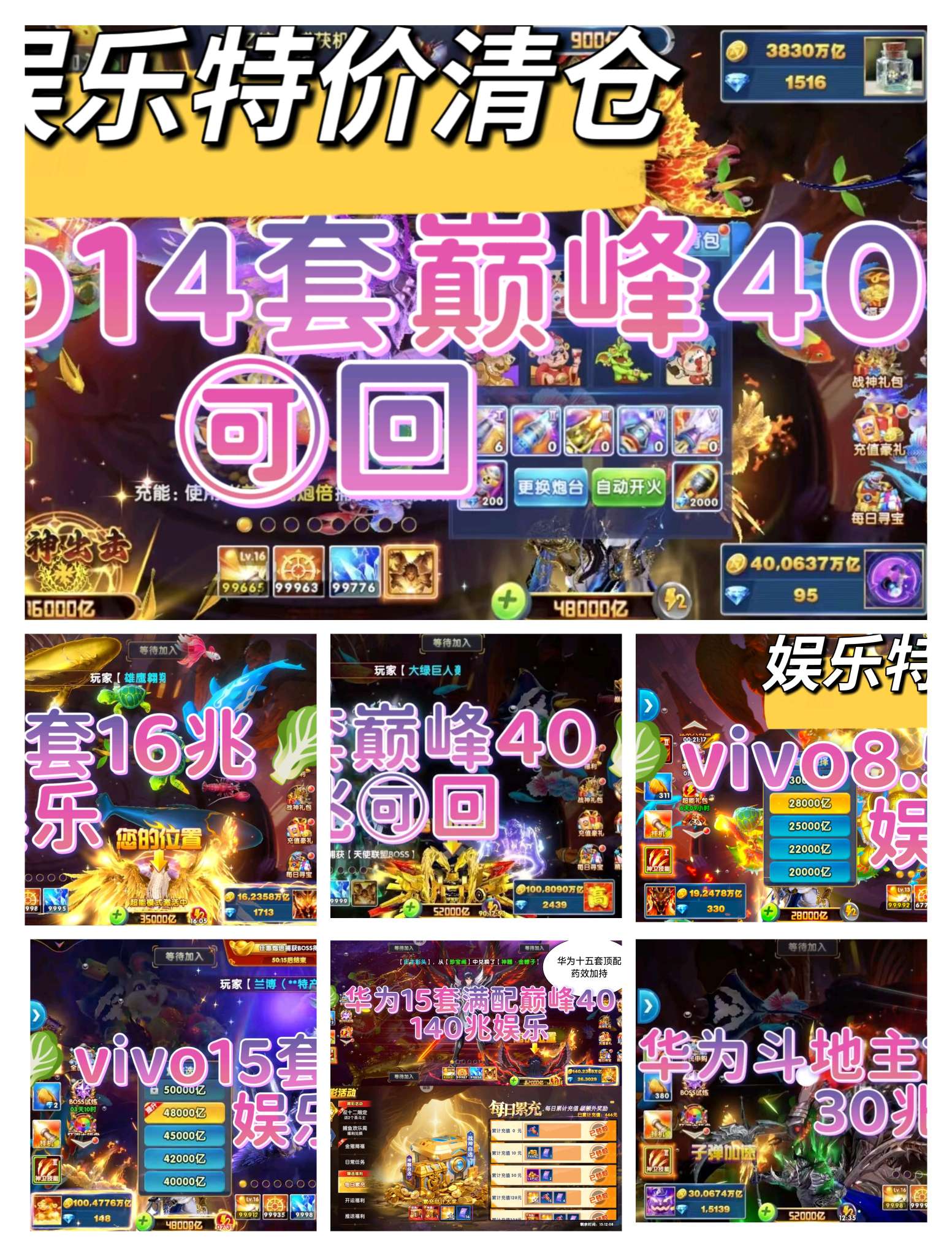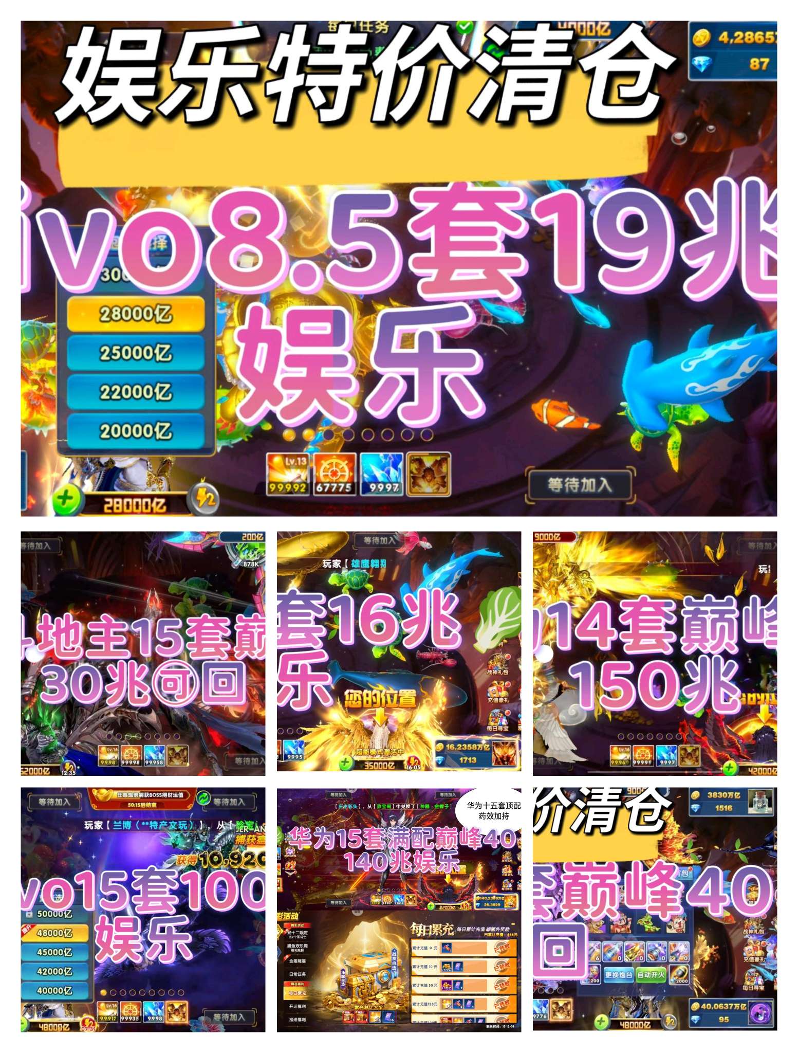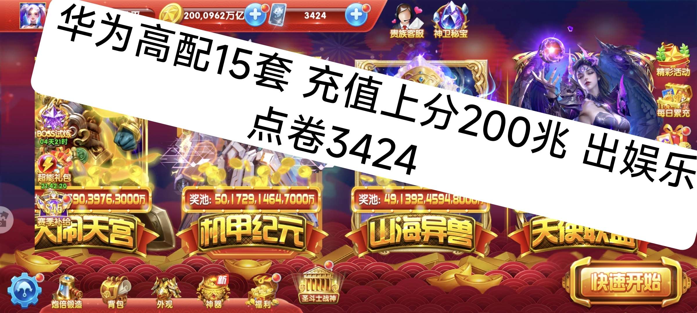 华为渠道高配15套 充值上分200兆,破回账号
