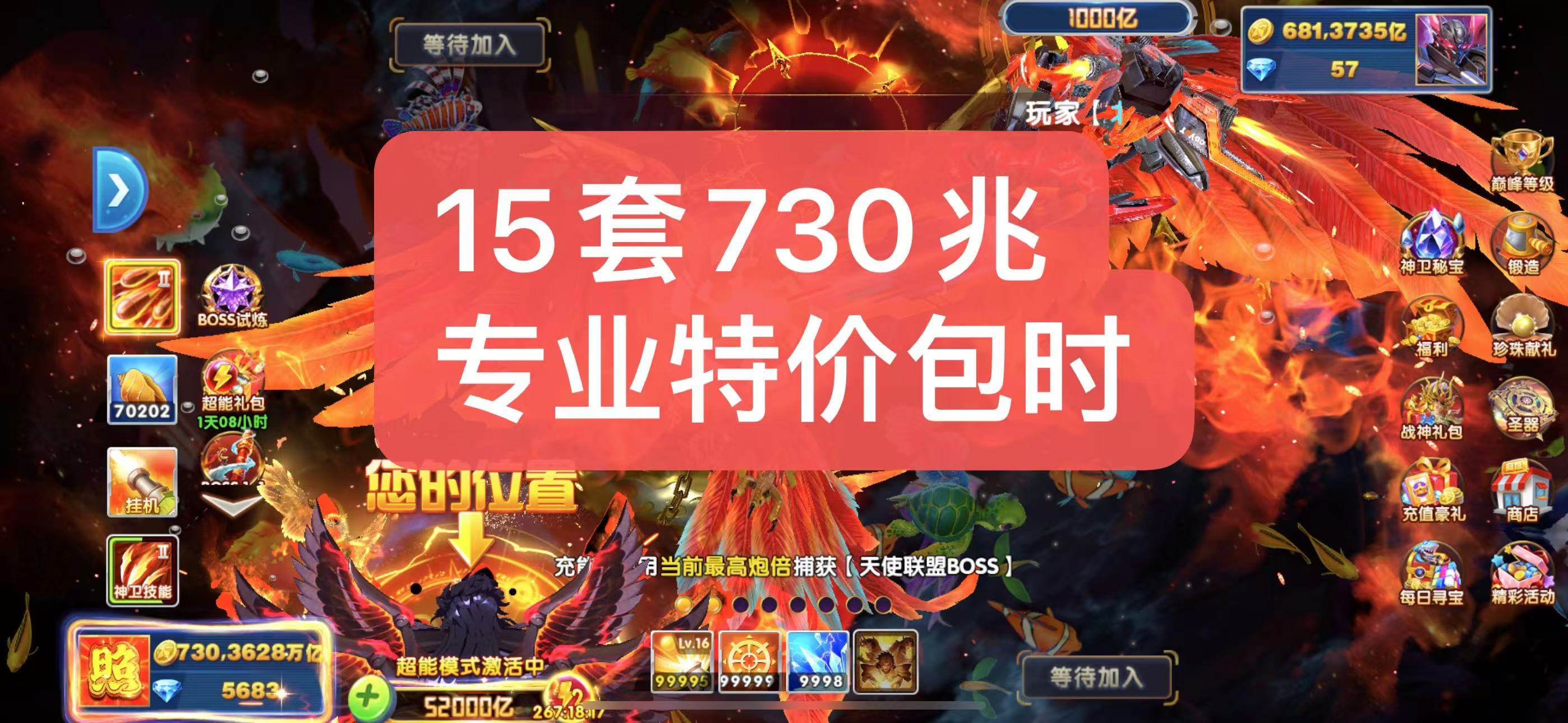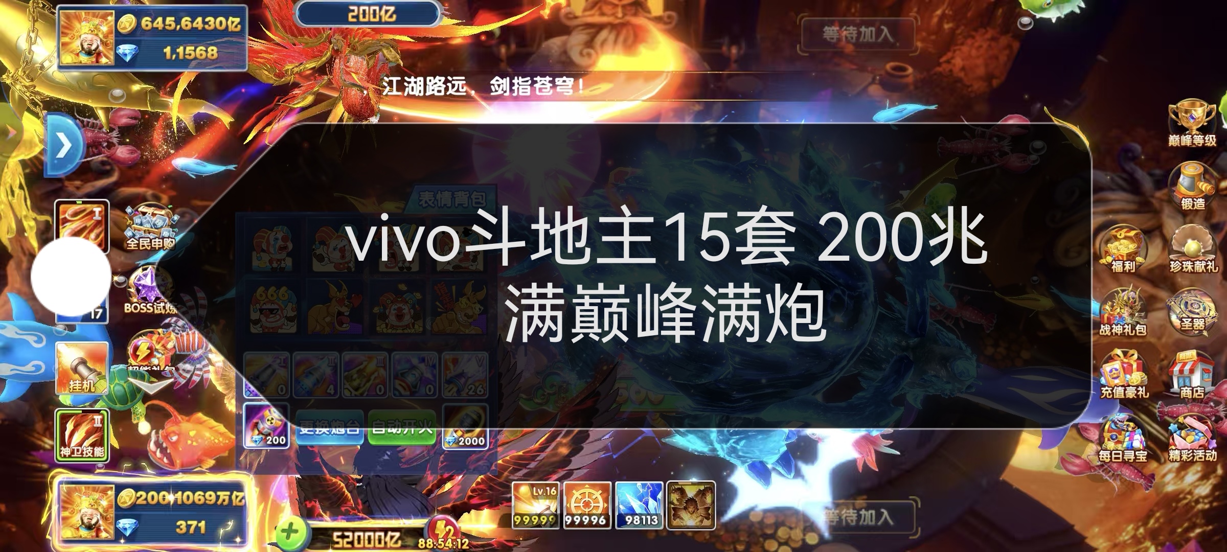 捕鱼大作战vivo端口加成917 boss翻倍13.5 纯救济5千多万 双神卫 组合技能 乐享10