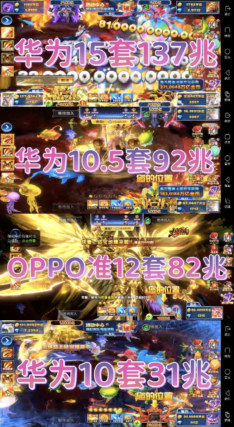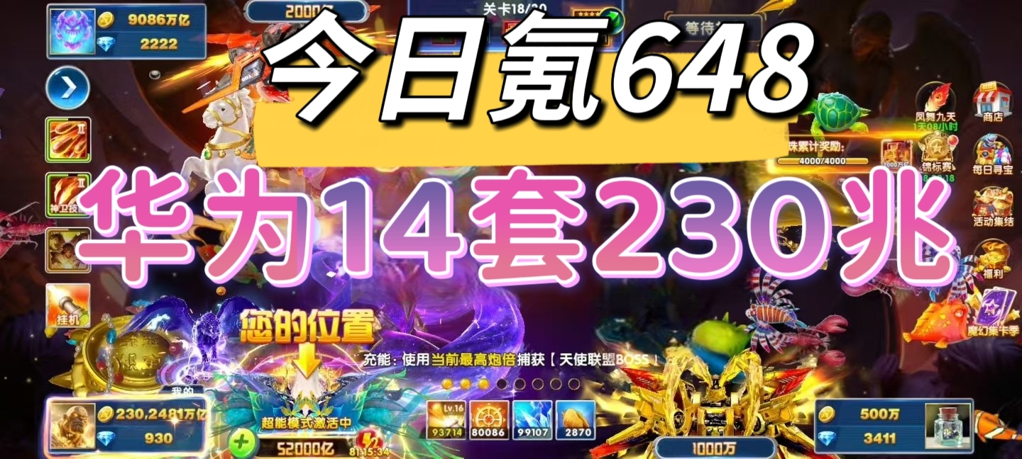 华为14套 特价出230兆金币 今日充值648,来快枪手不拖号的,感谢支持!