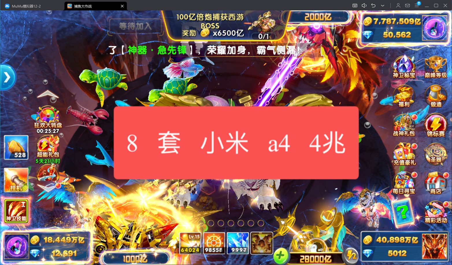 华为渠道V18,加成1537,14套,每日救济1.6万亿,概率翻倍,详看图。