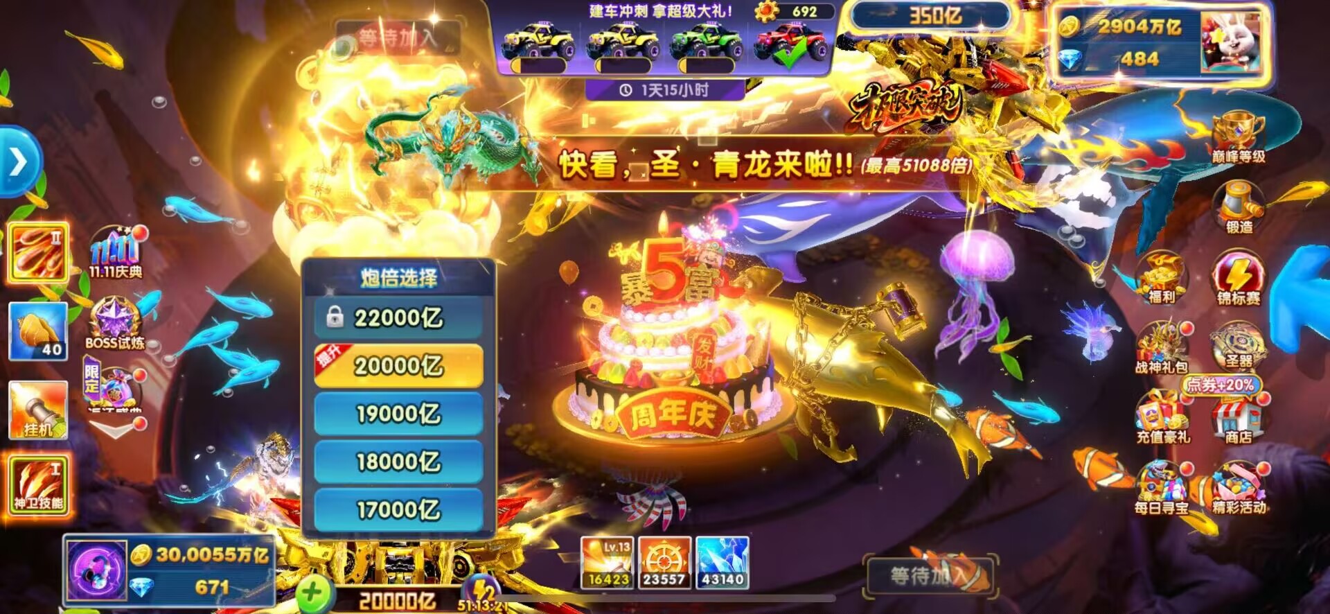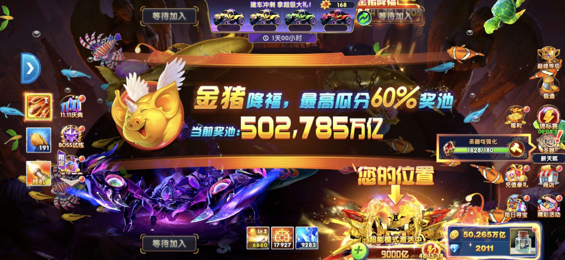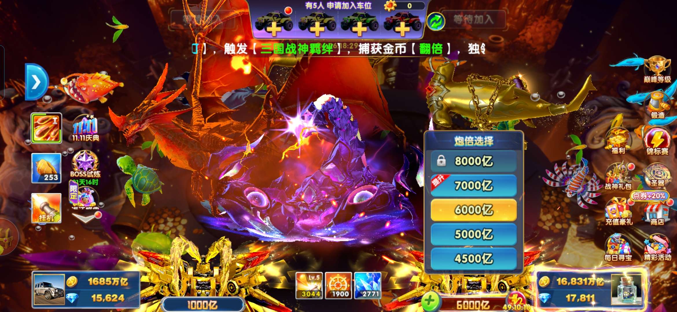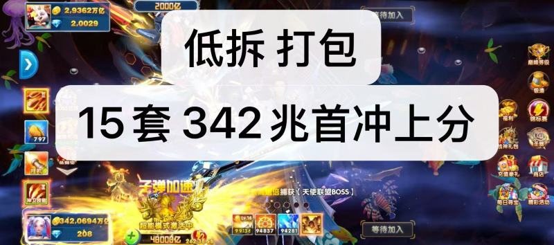 无绑v1 6000炮 16800万亿 狂暴3000+ 巅峰10 道具充足