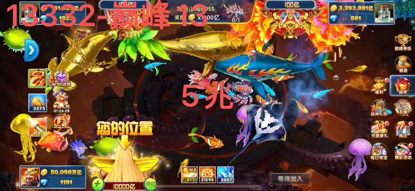 捕鱼大作战官方版本出租金币号/出售账号10-1000兆金币号