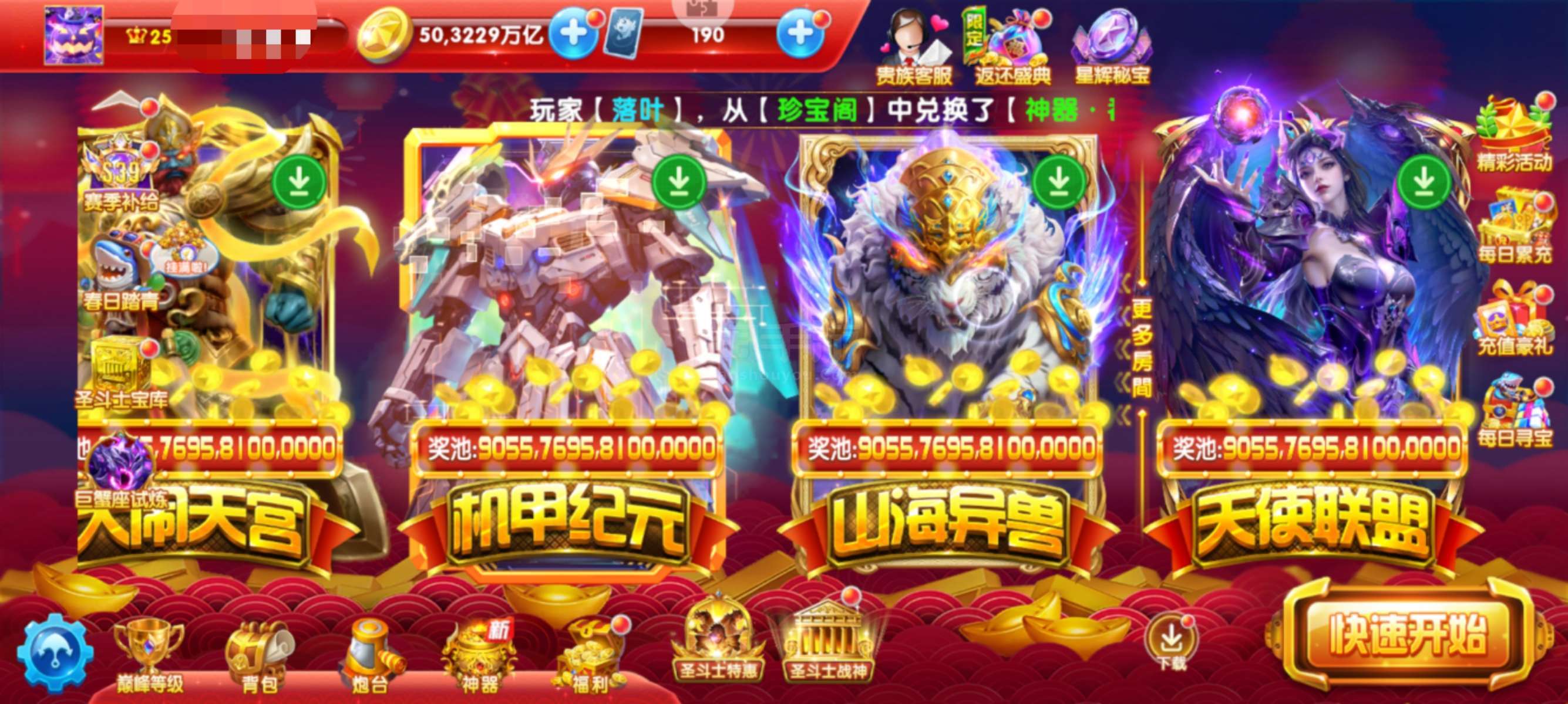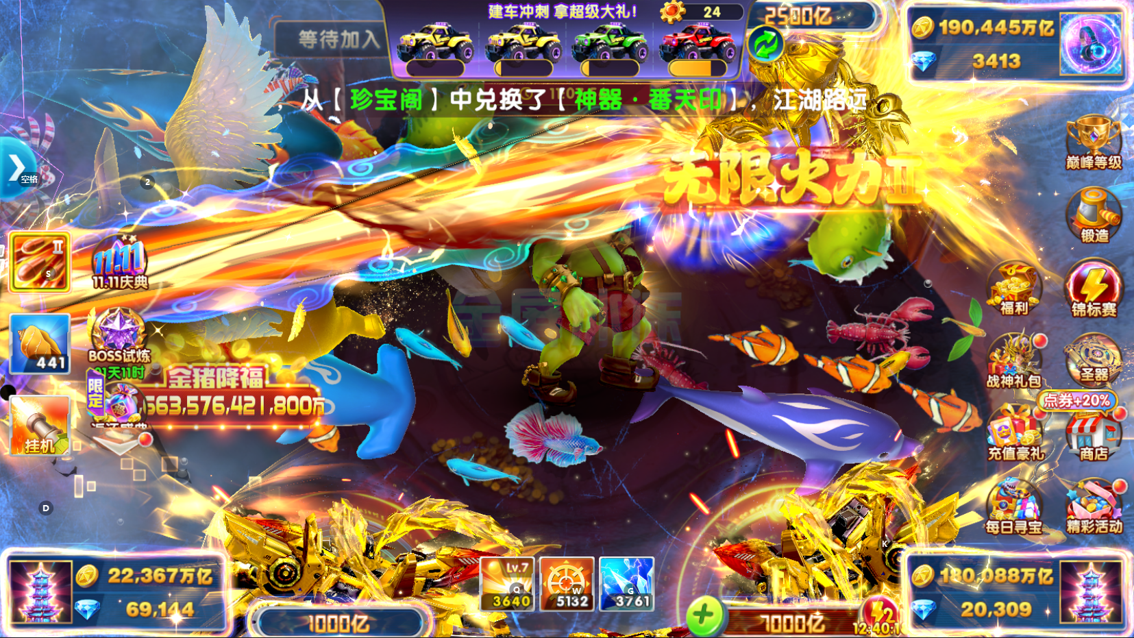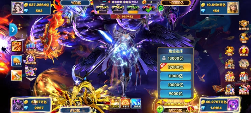 捕鱼大作战 4兆超高炮高巅峰多战神翅膀,纯娱乐。