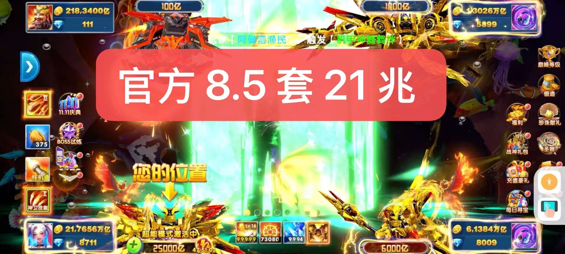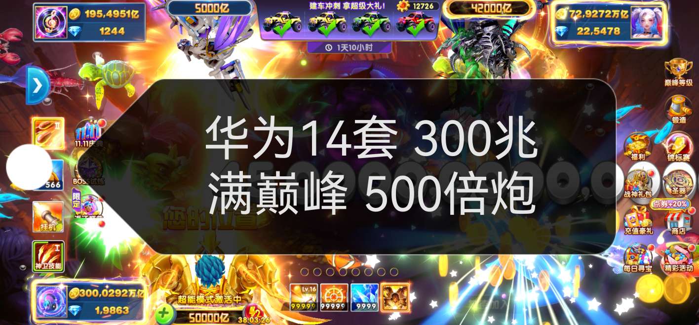 捕鱼大作战兆亿超高炮高巅峰多战神翅膀、特价出分。