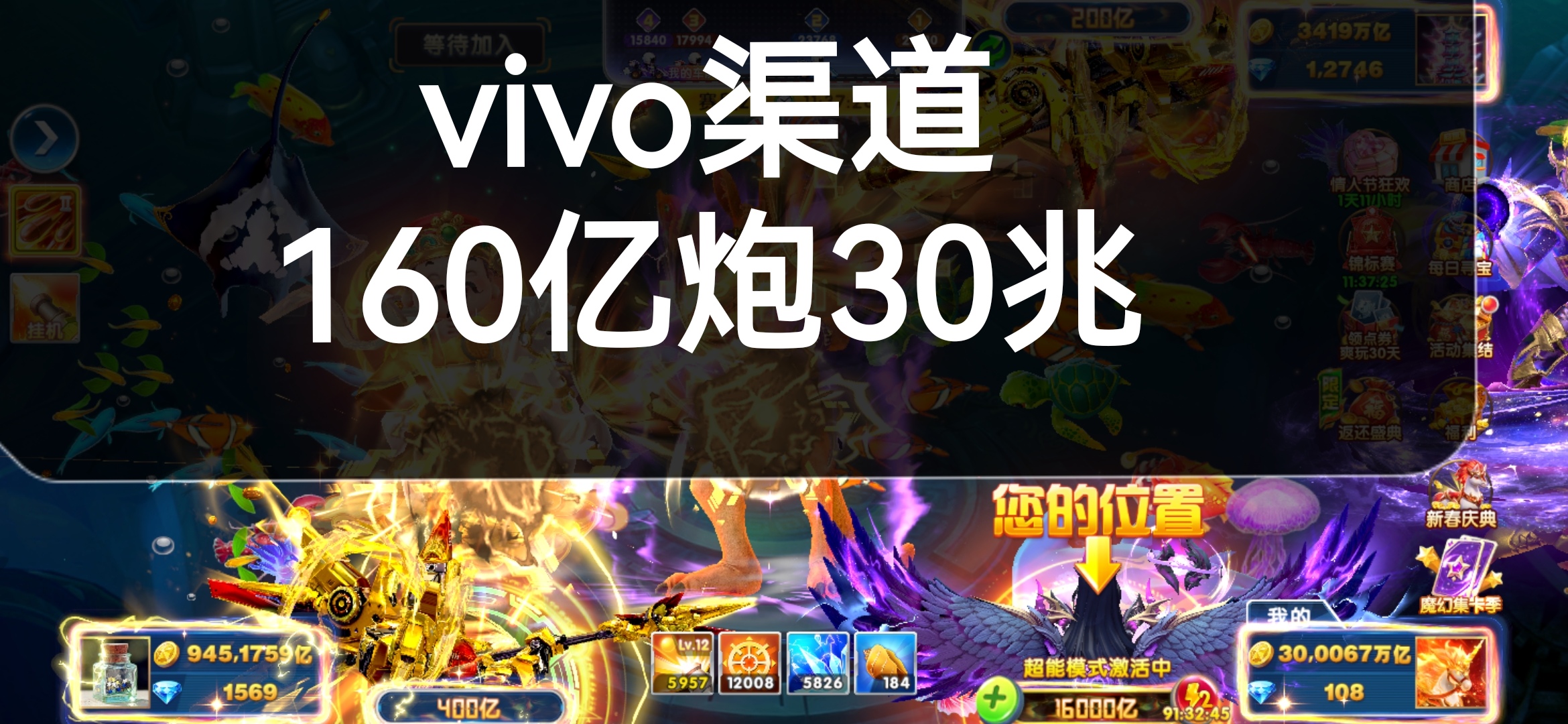 捕鱼大作战vivo渠道160亿炮30兆金币纯玩