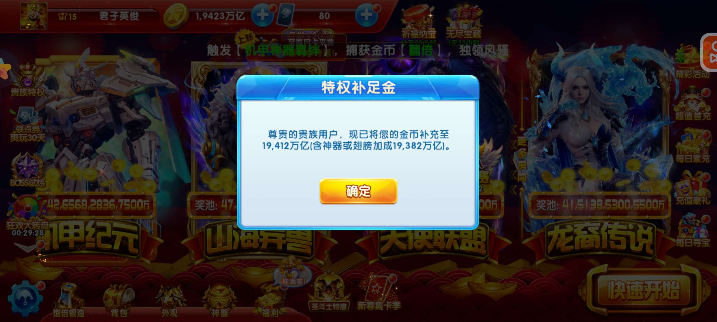 官服,翻倍26%,财神头像,曹操出战,排面拉满,V15,密码登陆,每日补偿金20000万亿,找回包赔