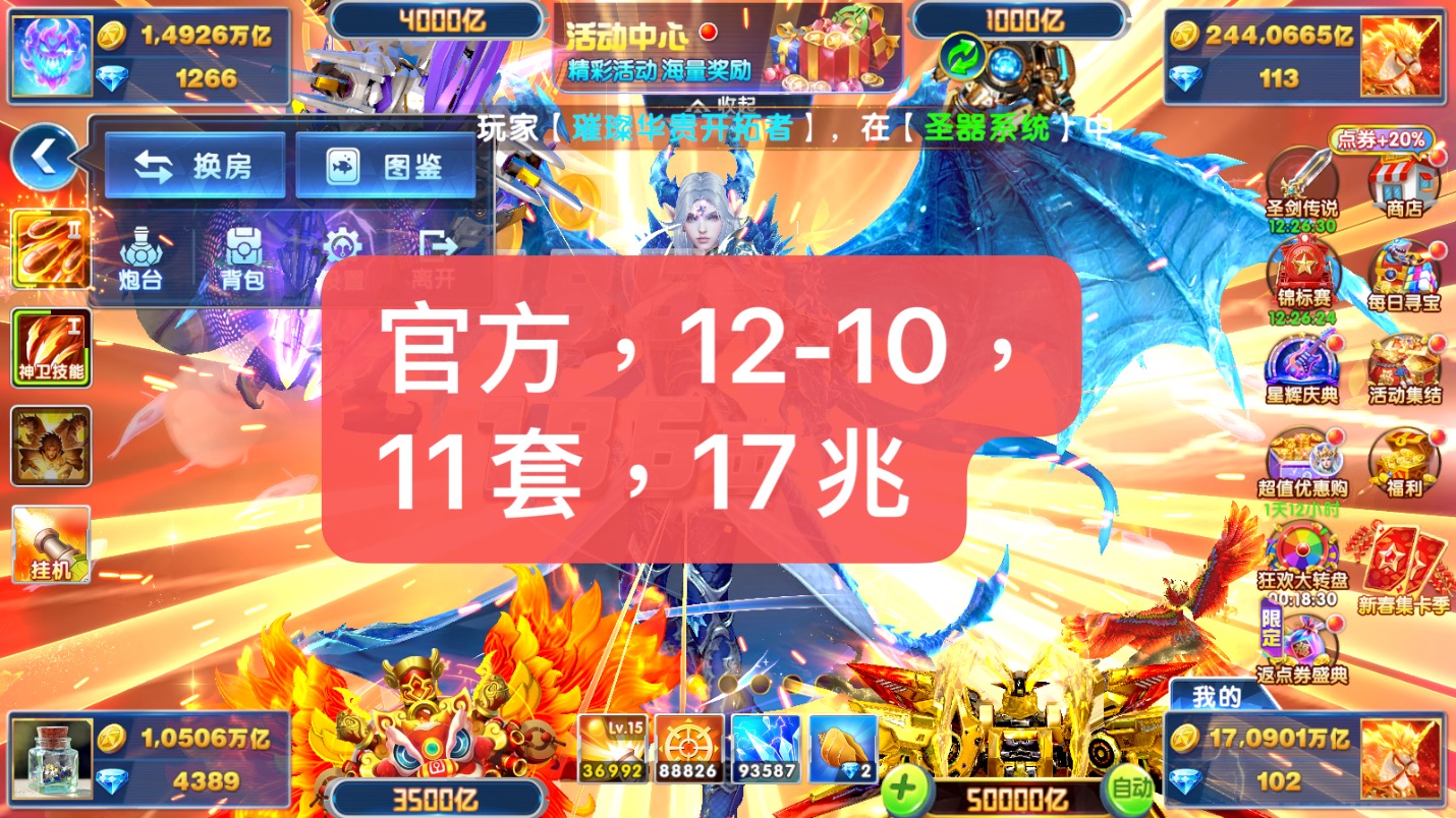 oppo极品v15,救济2兆,加成1430,9.5套,冥王哈迪斯,3级大天使, 龙332天使334新
