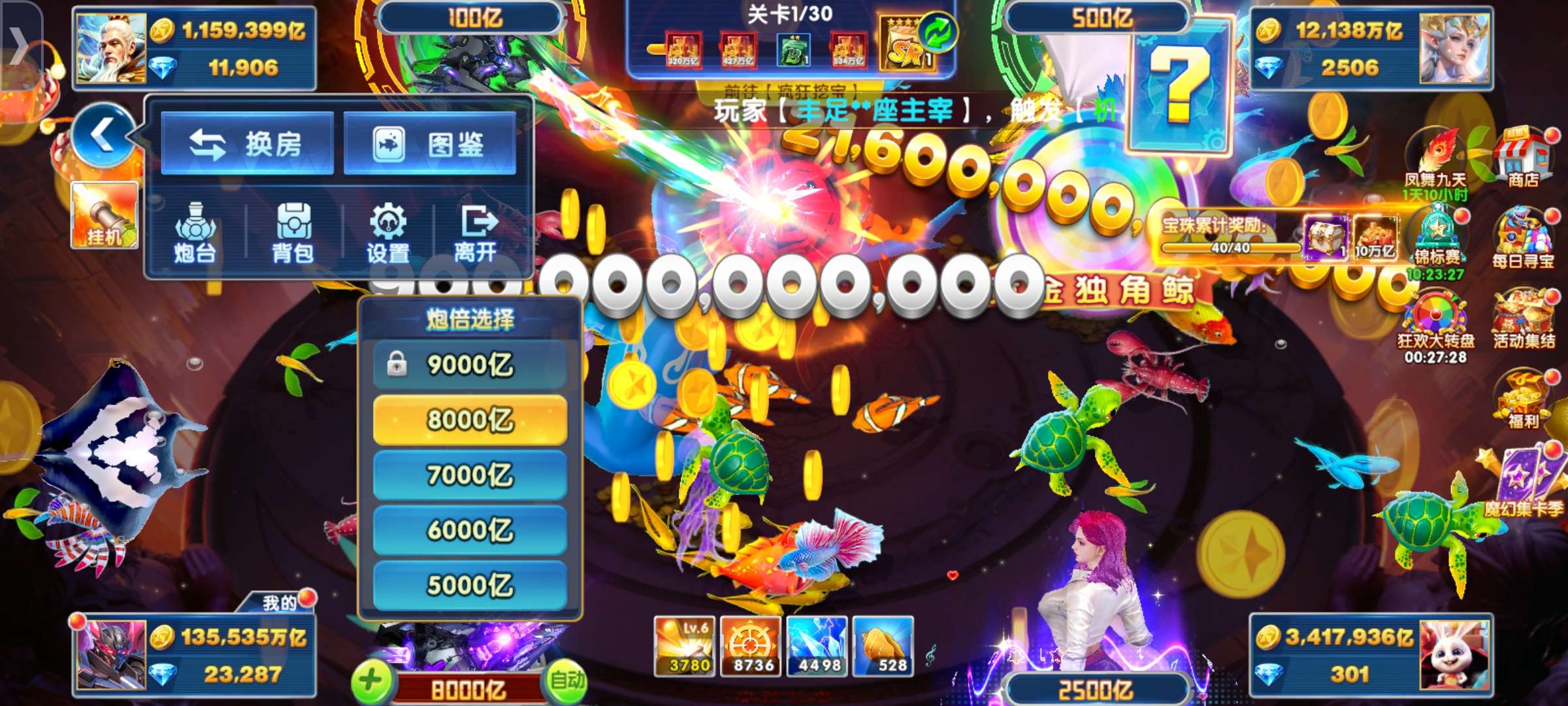 vivo渠道捕鱼大作战,7.5套,全技能,必杀技组合技都有,机甲776,西游96,纯救济一兆