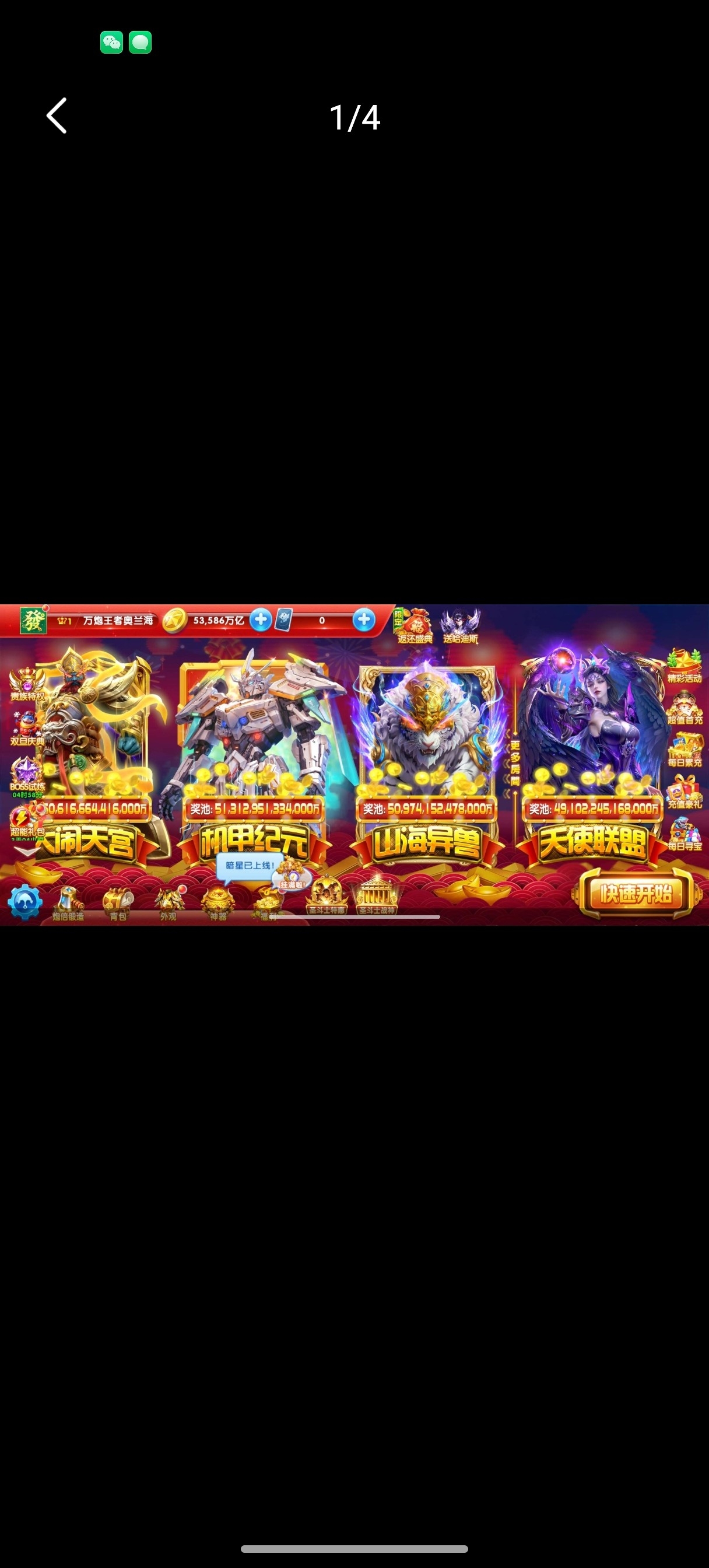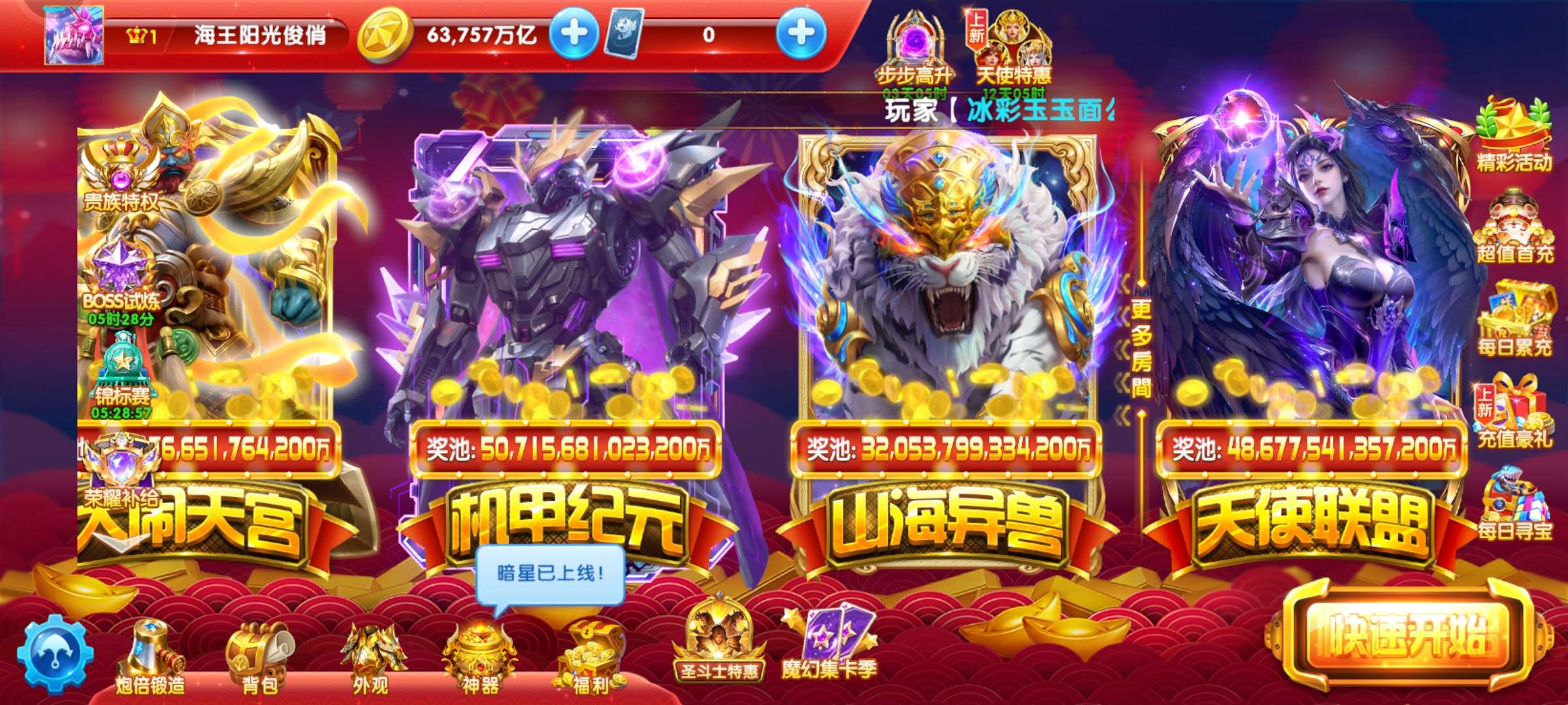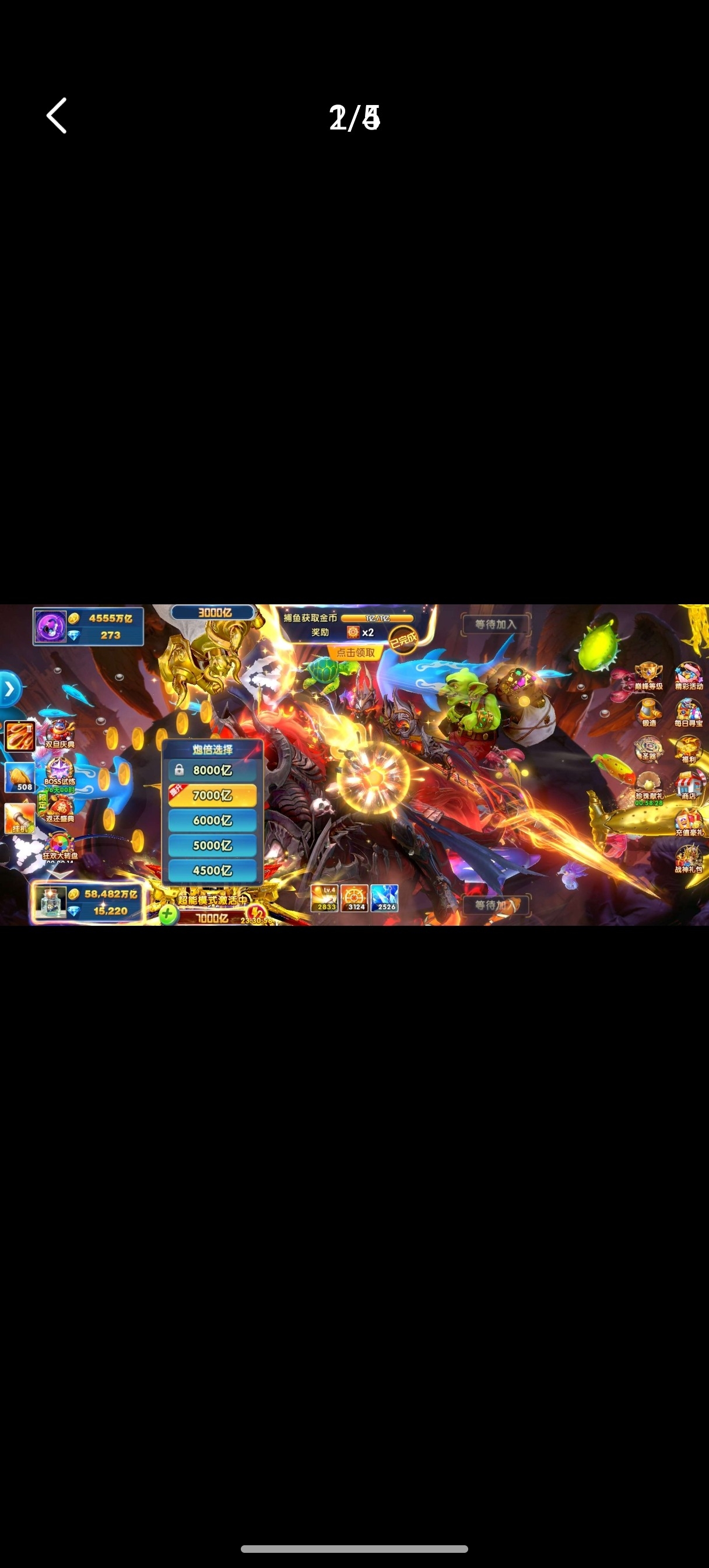 捕鱼大作战小米版本,原60亿炮,金币4.7兆,巅峰12级,翅膀已到期,破可回,巨多boss未打!