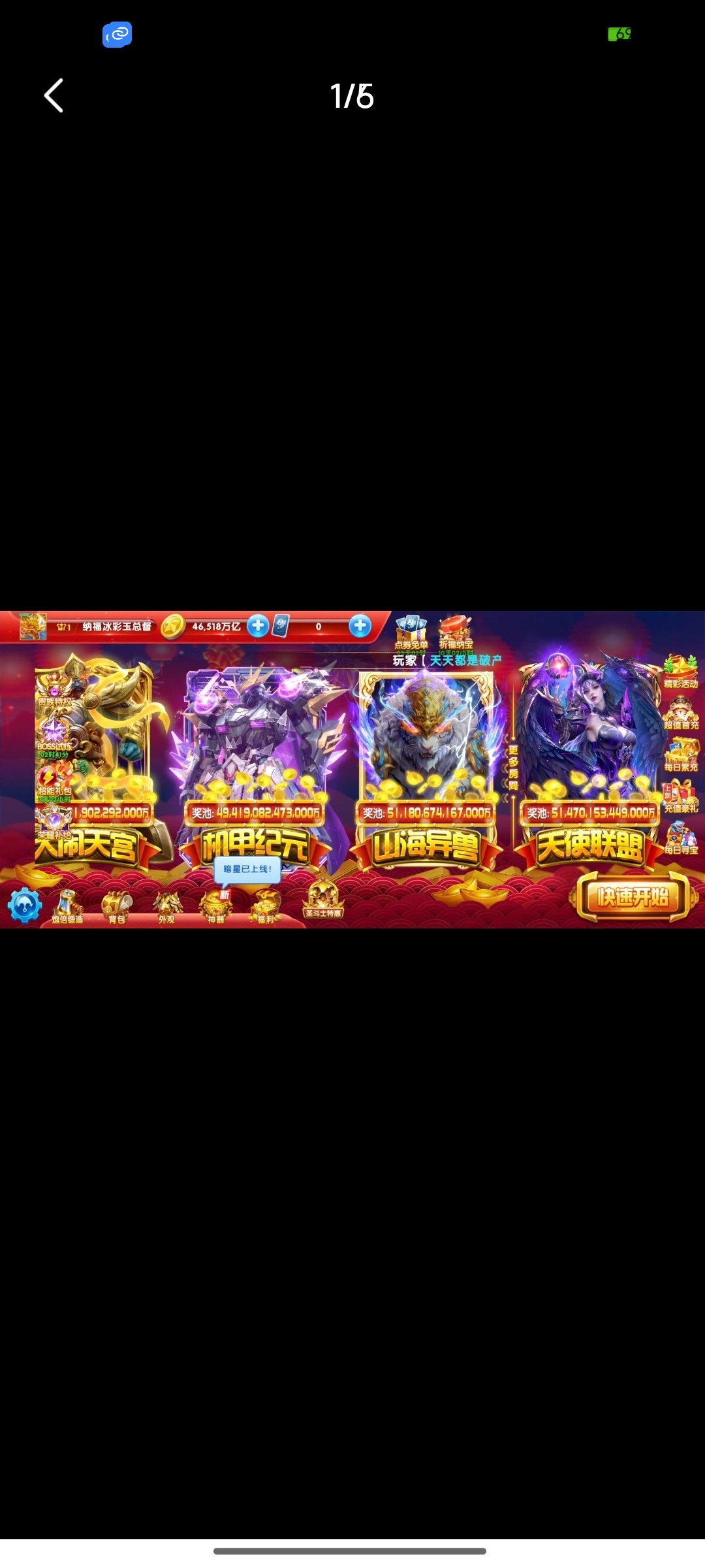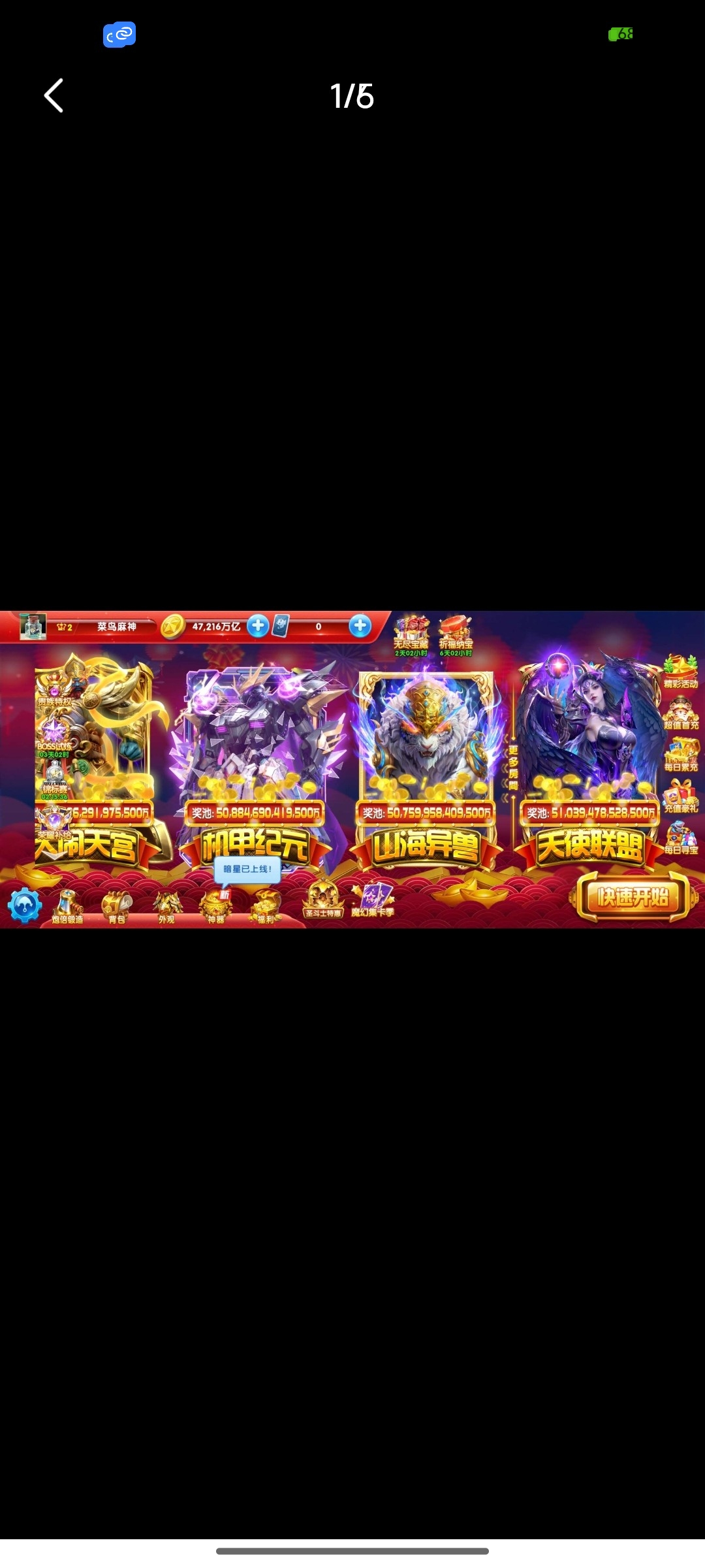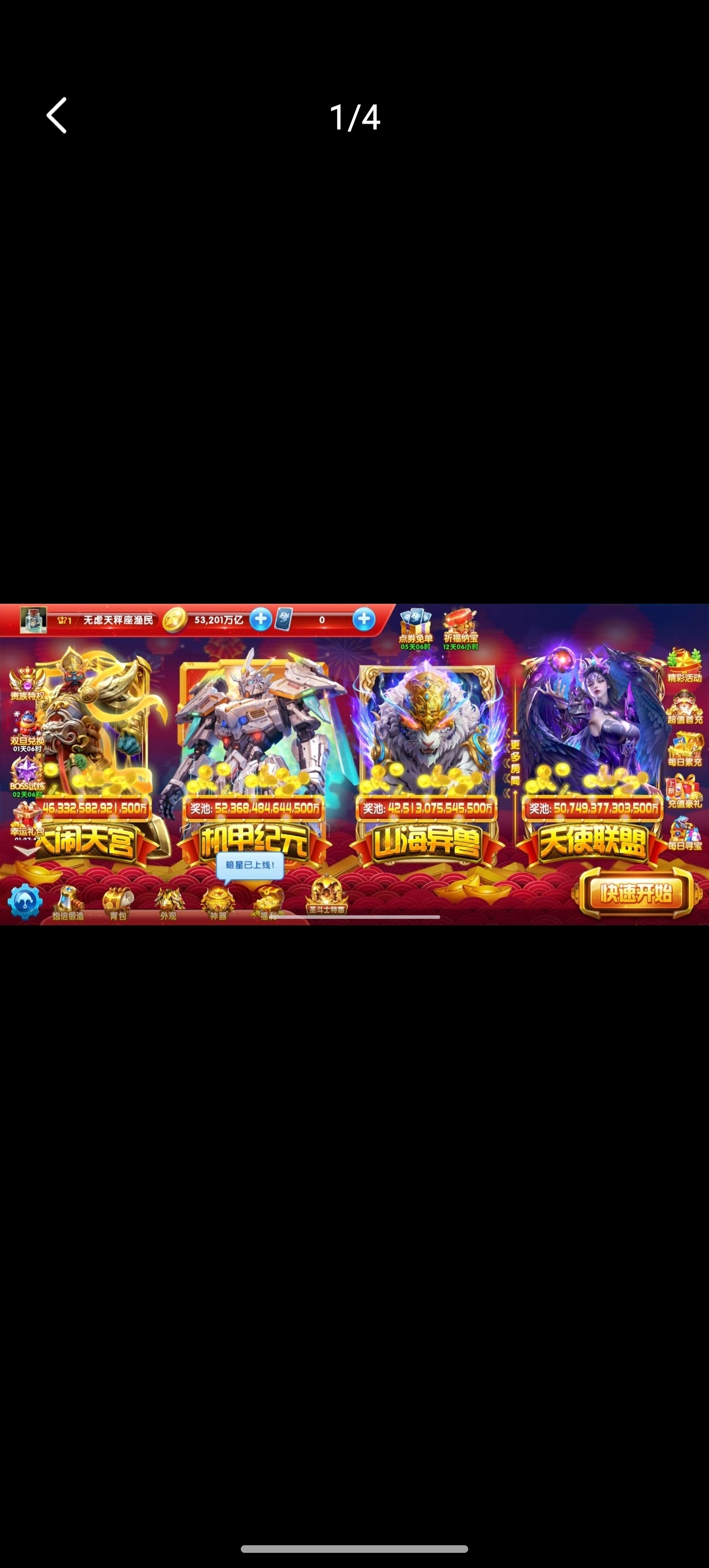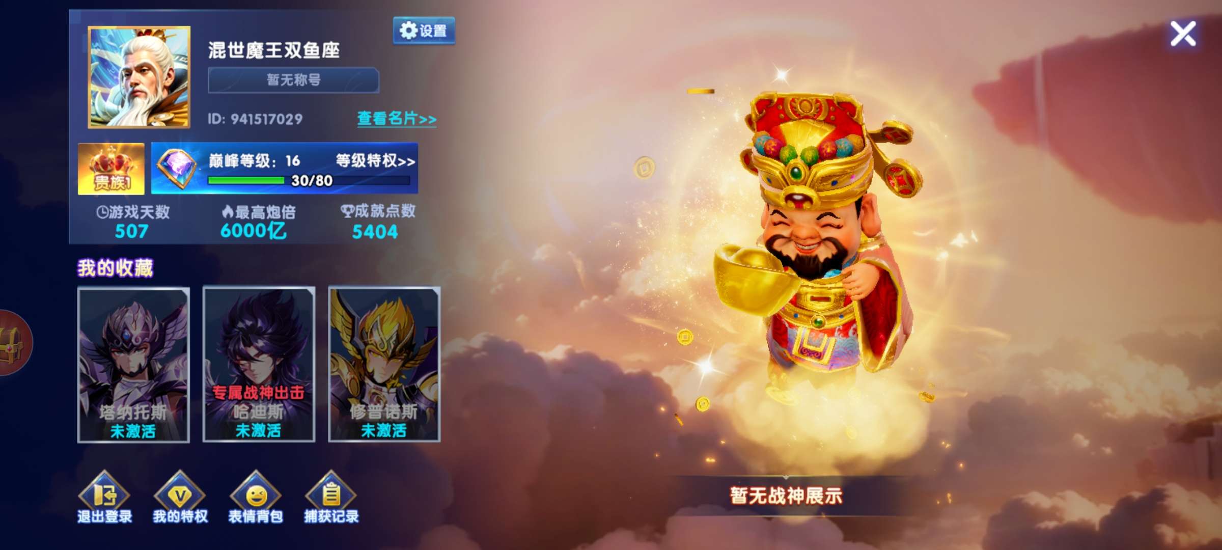 捕鱼大作战小米版本,原60亿炮,金币4.7兆,巅峰12级,翅膀已到期,破可回,巨多boss未打!