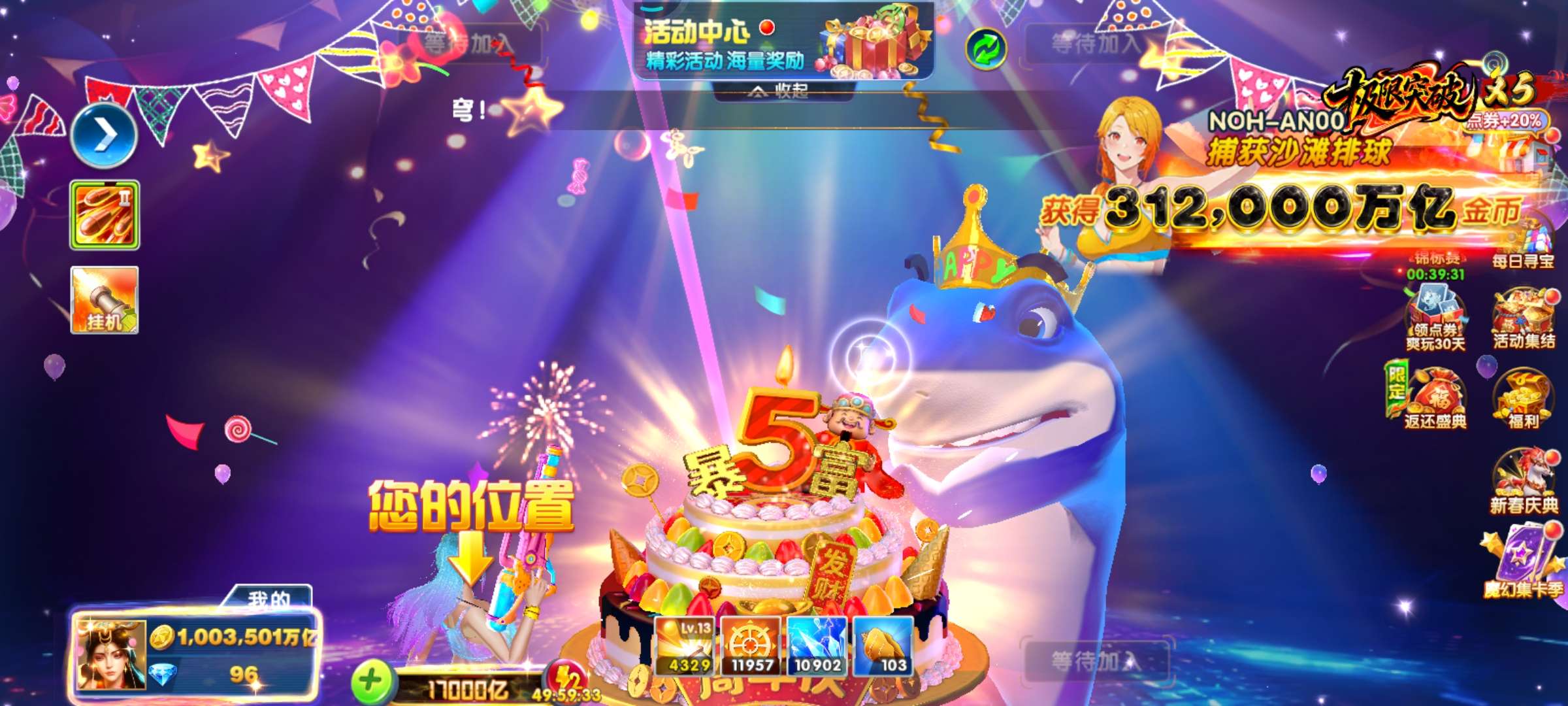 捕鱼大作战小米版本,原60亿炮,金币5.3兆,巅峰13级,破产回15,低价出售。