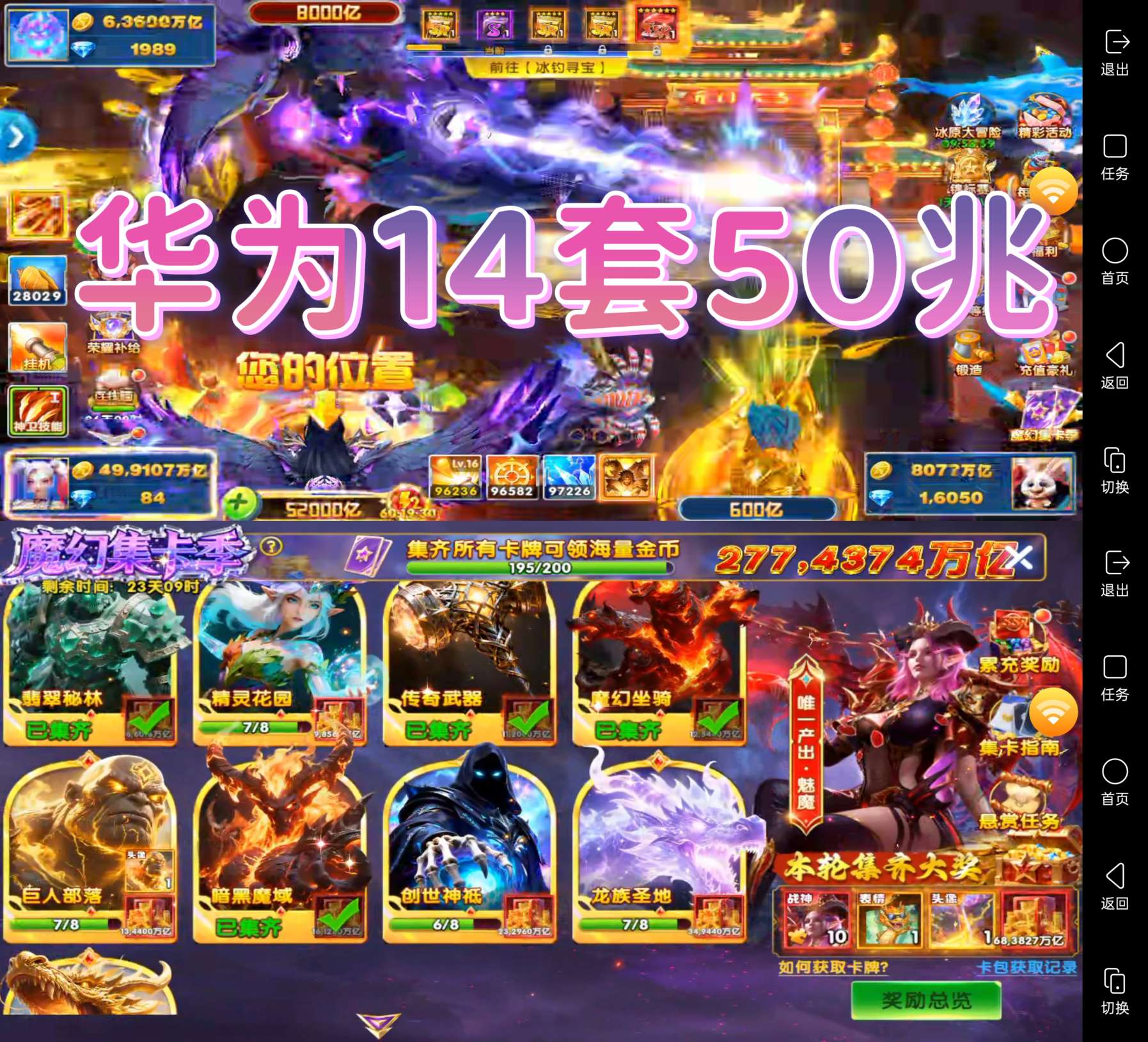 华为14套 出金币50兆,差5个卡片,总共可领取100多兆