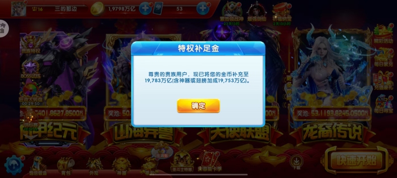 华为版本V23特权11加成1501,14套救济2.3西游99机甲999战神999三国876山海579组合技神卫天使必杀都有,极品星甲,最高上过3500兆,带个鱼乐达人V16