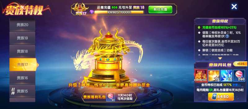 出华为渠道贵族20号,加成1977%,炉子5级,聚宝盆7级,天使技能,啥都有,神器以打满,13套装,