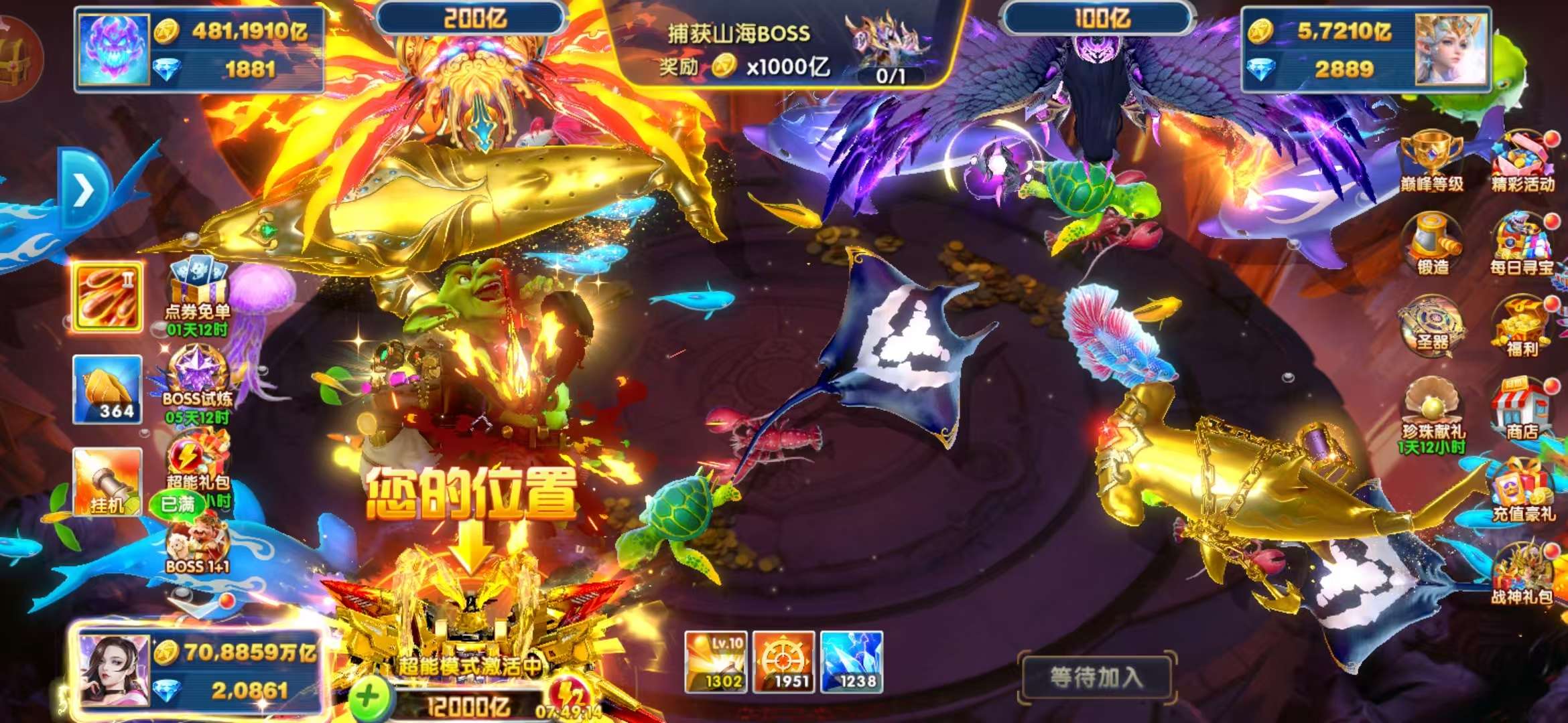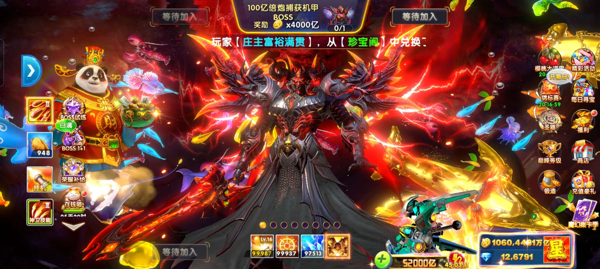 带号出 6兆金币 60炮 带滋炮台 巅峰11级 狂暴2431 核弹22