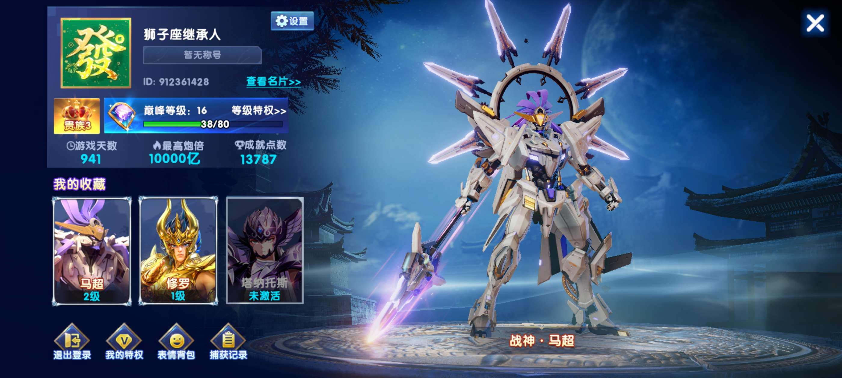 带号出 v6 1378万亿 实80炮 虚90炮3天 刀手1个 圣斗士1个 巅峰12级 狂暴4541