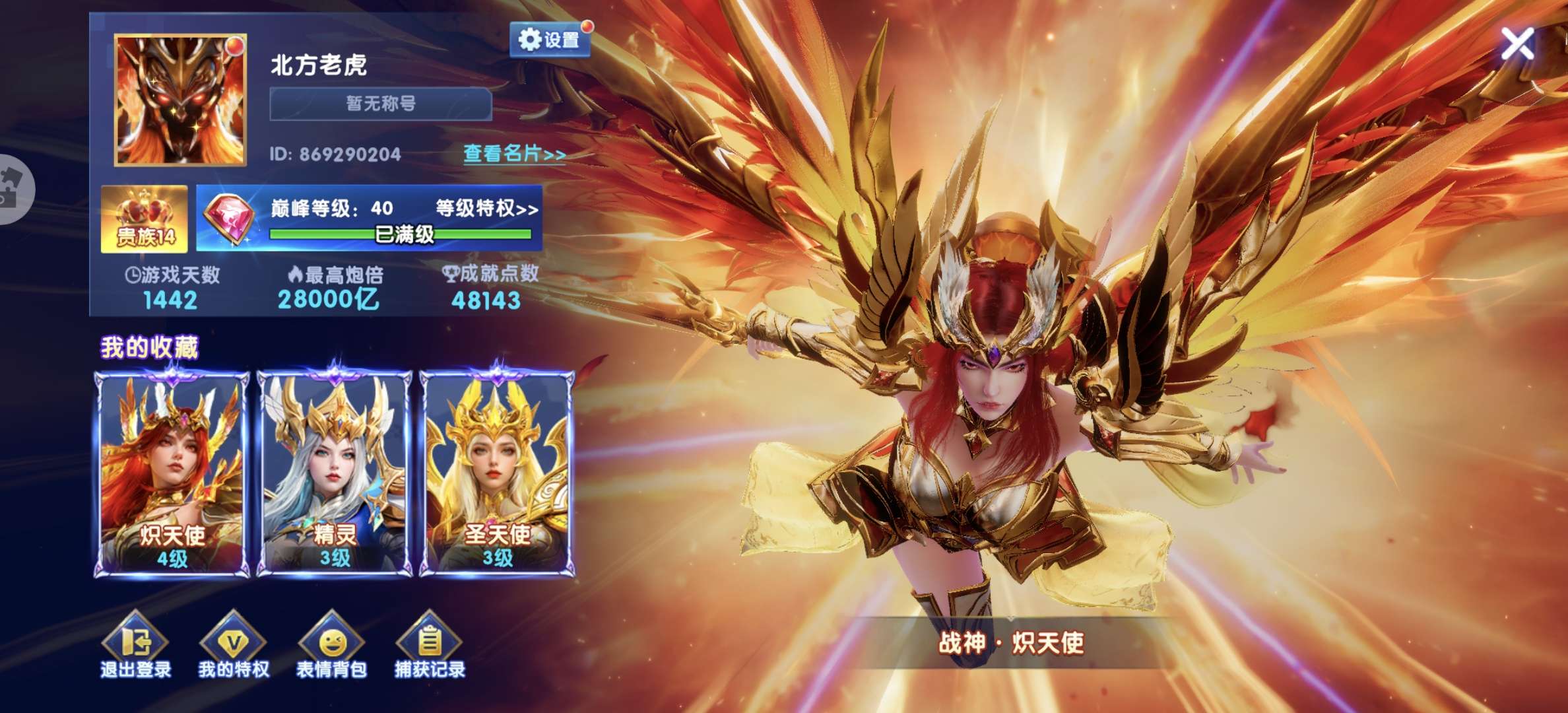 贵族23-个人号华为版本-15套-特权12-纯救济2.9兆高爆发-加成1660马上1700-三国999999-机甲999-西游99-山海999-天使543-账号资源多-战神、机甲都有-巅峰等级高-安全换绑一切