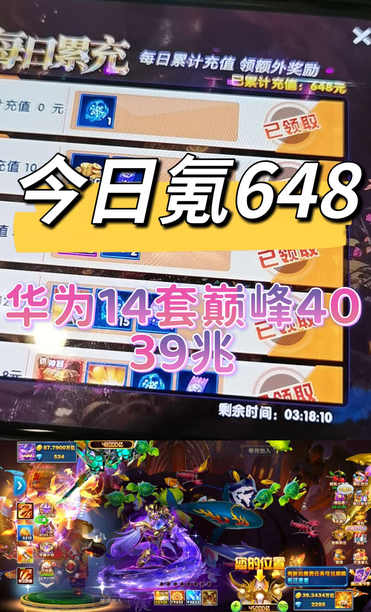 华为9套 特价出金币 43.5兆➕巅峰差一个领2兆,最少45.5兆。
