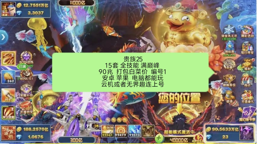 贵族25 机甲15套顶配 全技能 40兆出租。云机上号 白菜价。