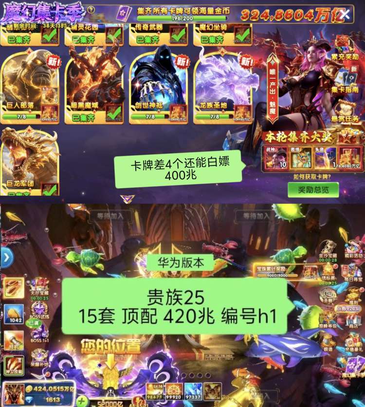 华为14套 出金币46兆,来正常打,不拖号的便宜出。