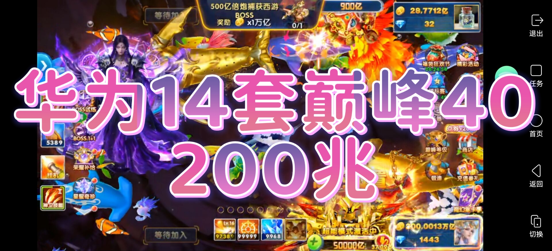 纯玩捕鱼大作战华为版本14套120兆金币