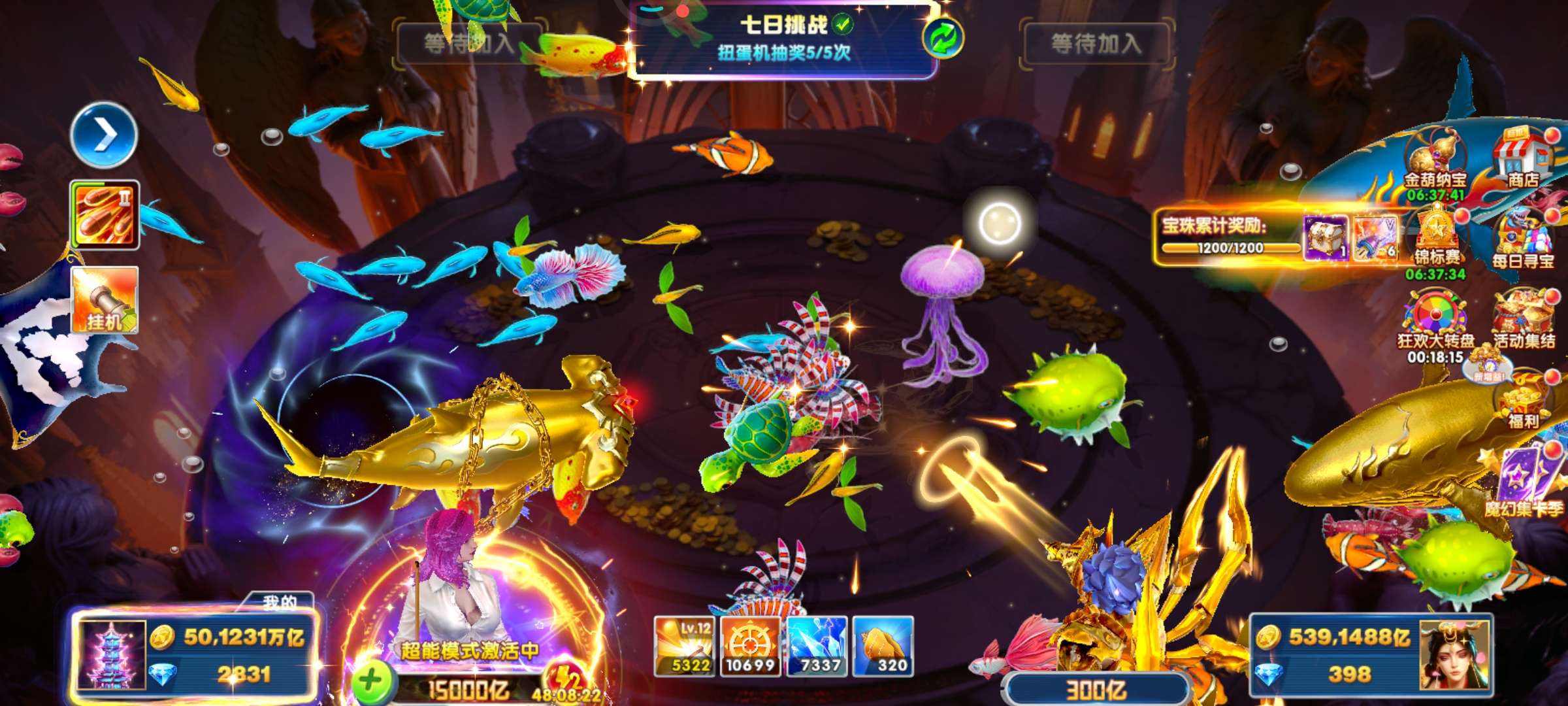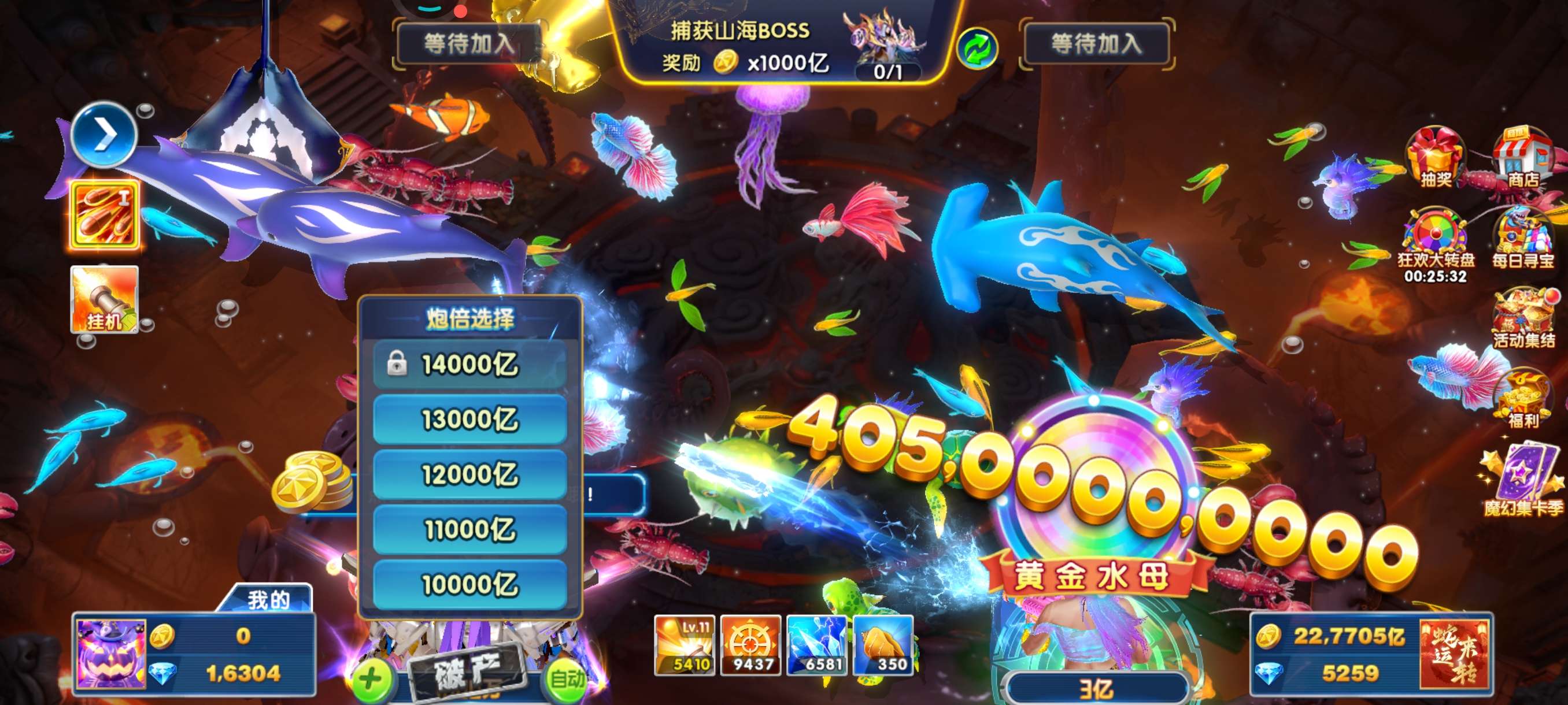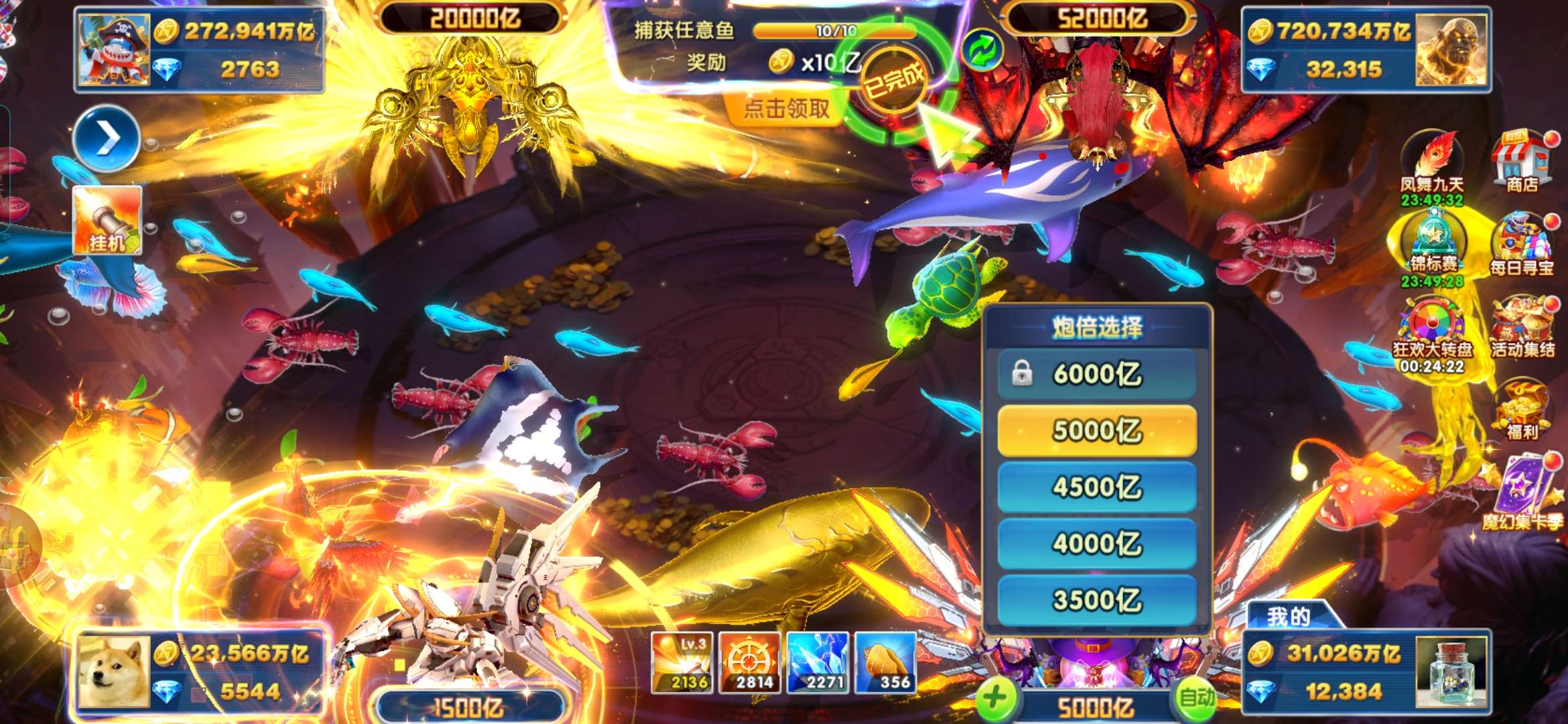 无绑v2 5000炮 31000万亿 狂暴2100+ 巅峰14 道具充足
