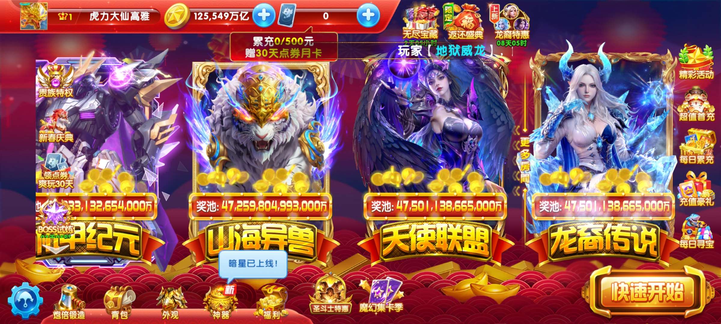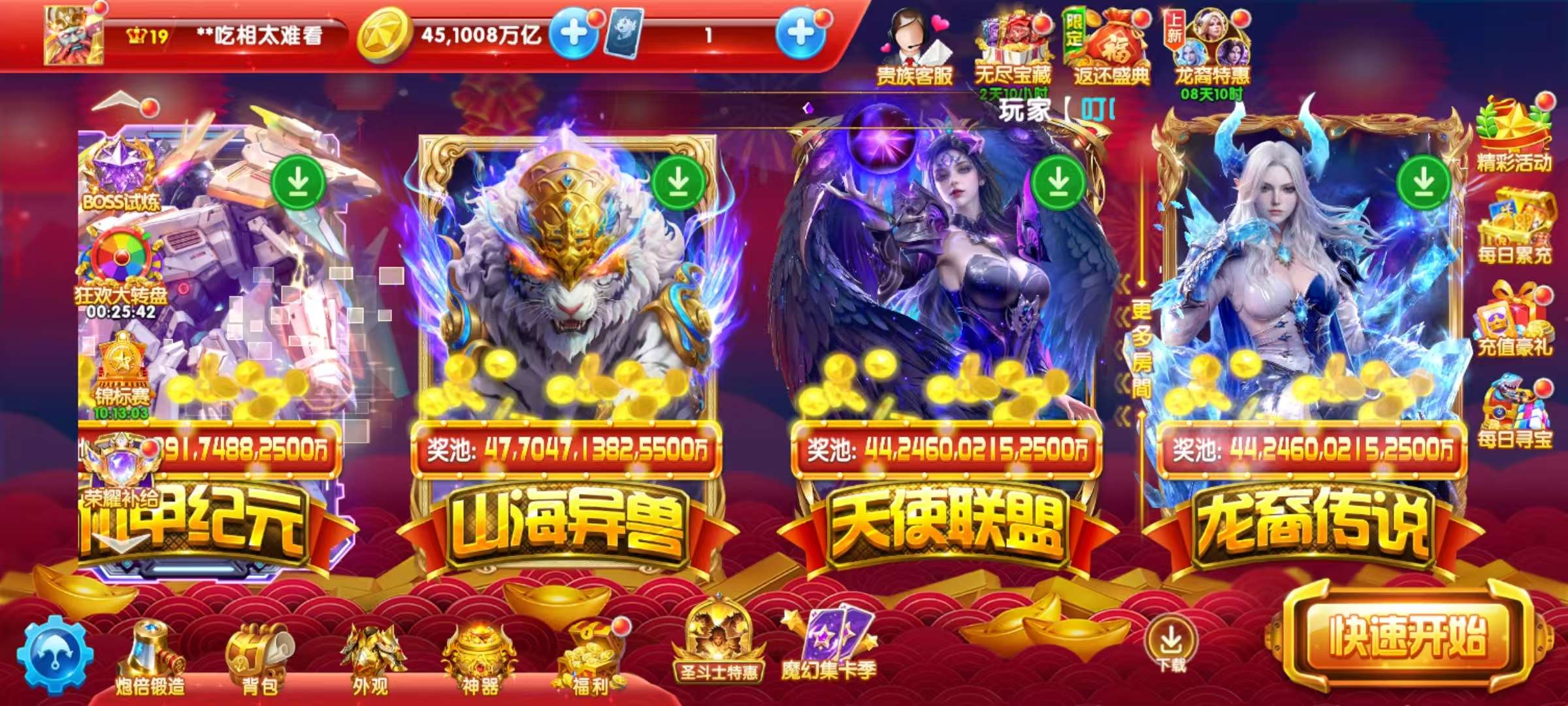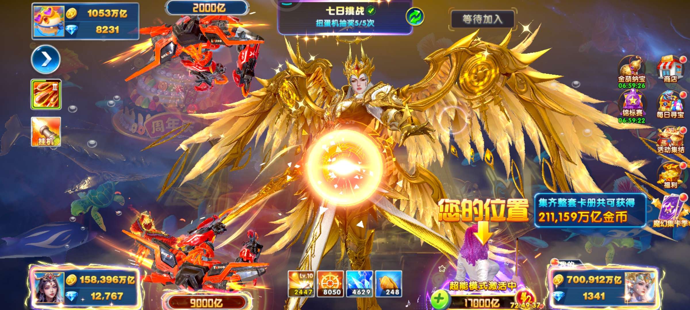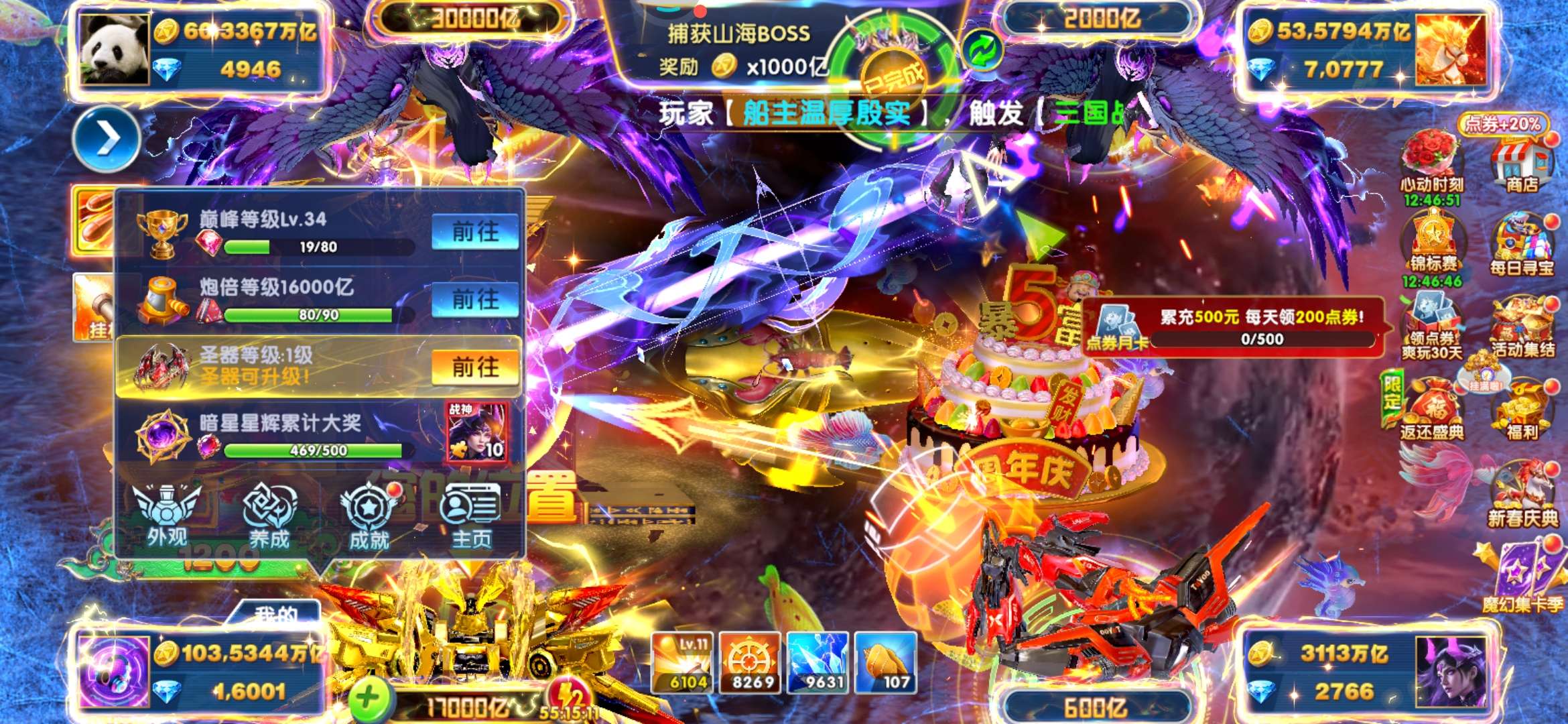 无绑v2 5000炮 31000万亿 狂暴2100+ 巅峰14 道具充足