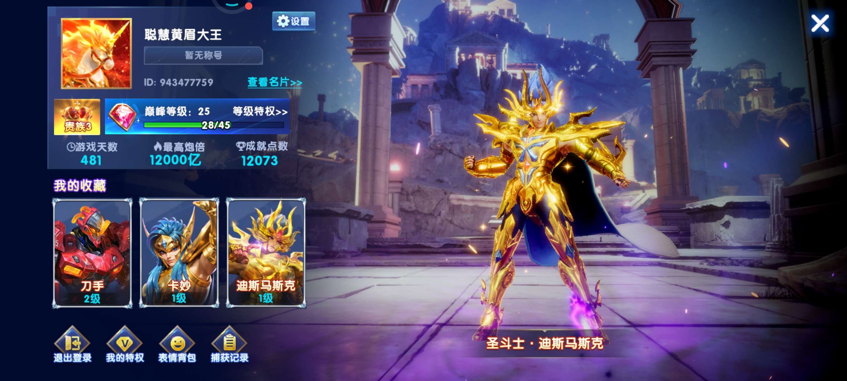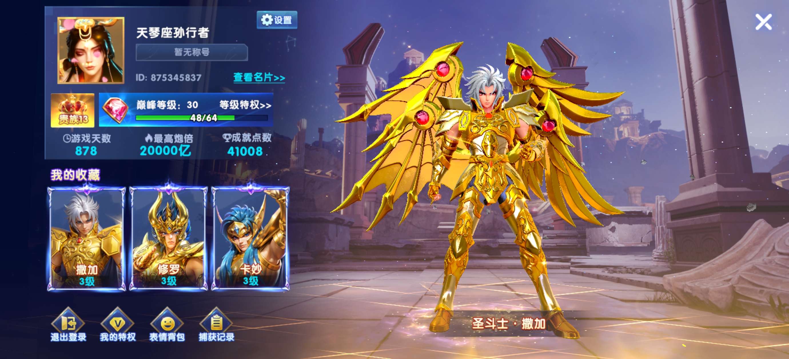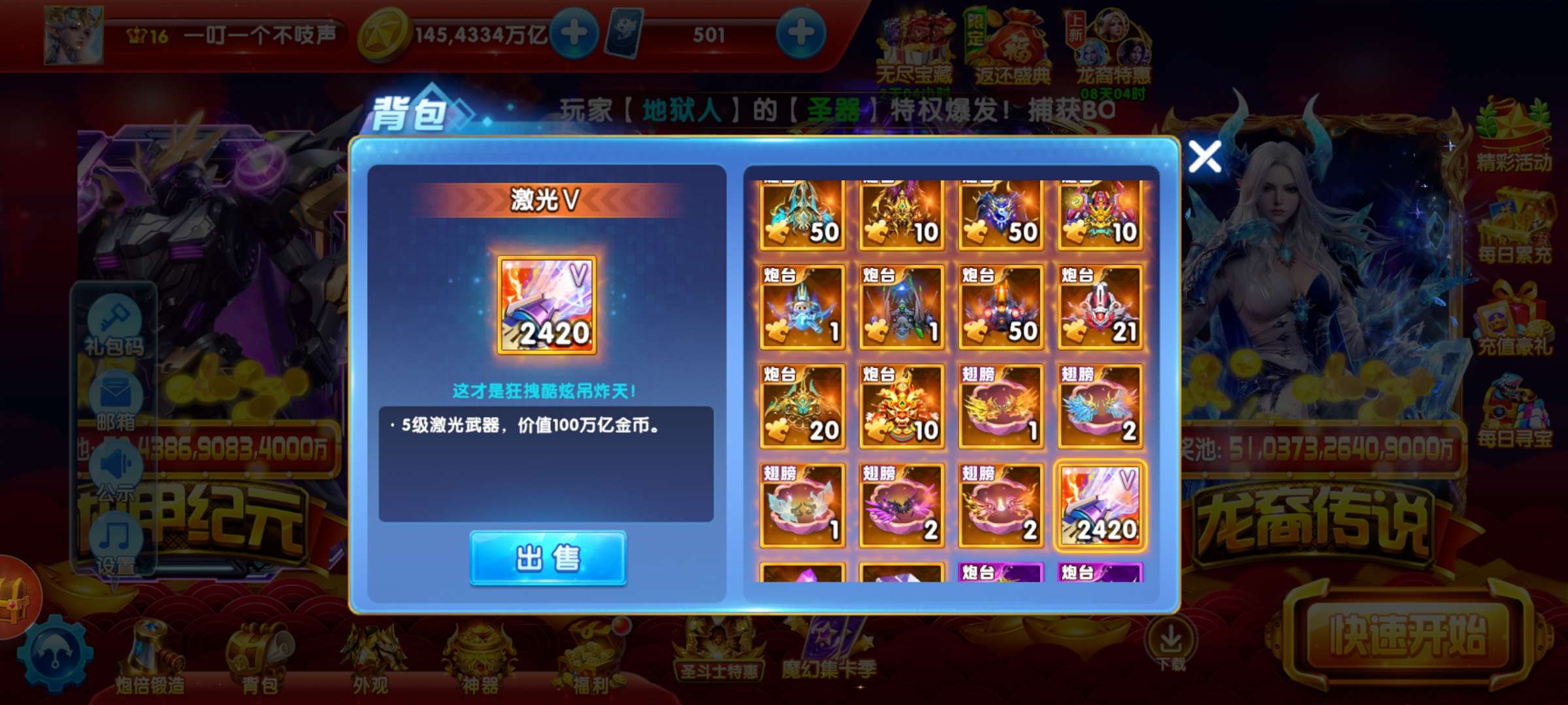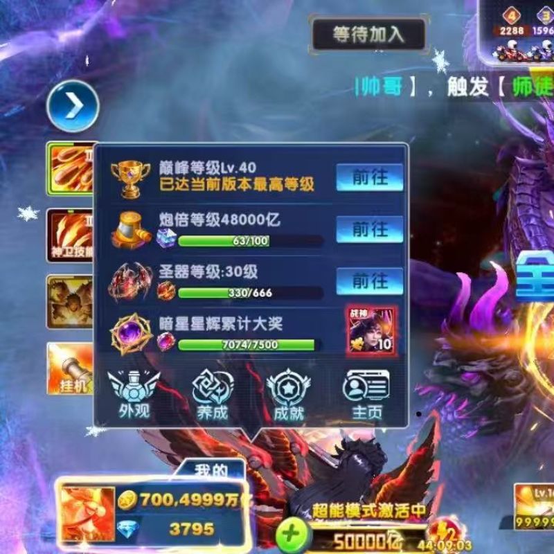 50兆金币纯玩可带号,实充V3-150炮圣斗士带超能,巅峰30,带号+140,编号7909号