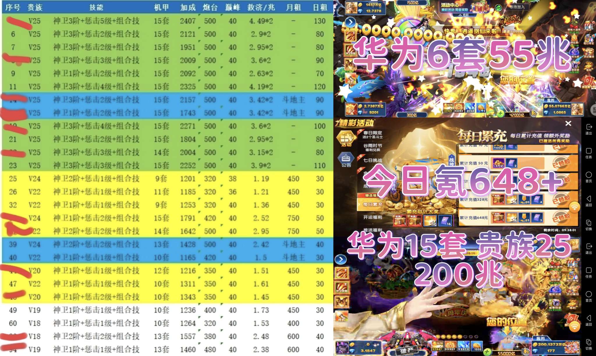 华为特权十二V24差2W贵族25加成1982十五套全技能龙裔444,六级炉子,换绑一切