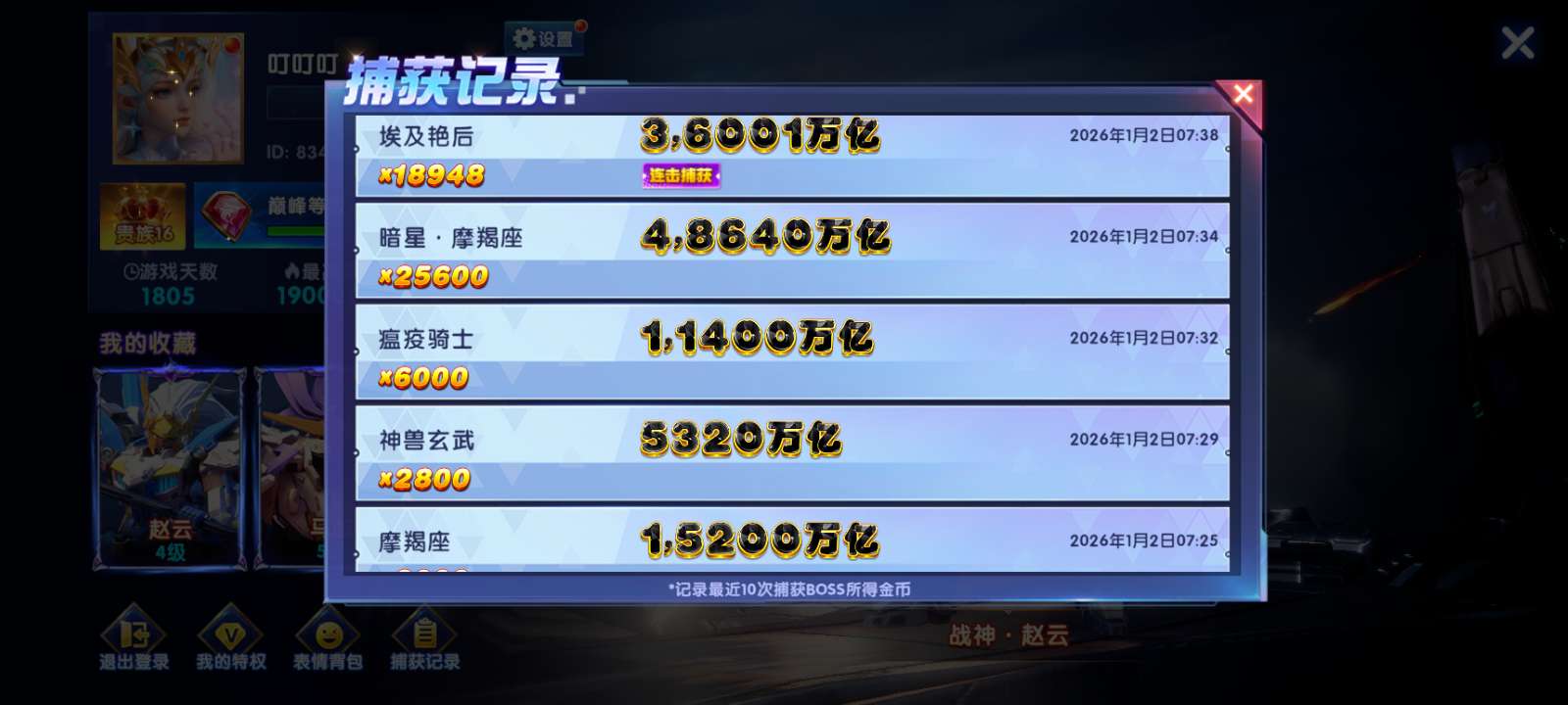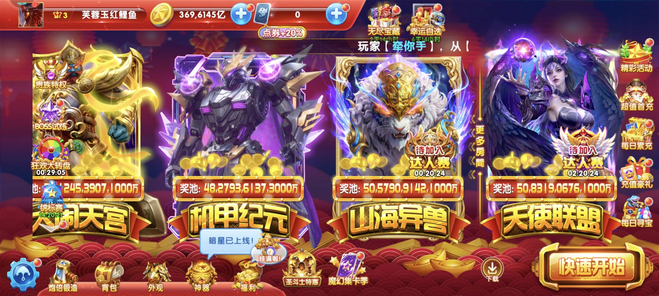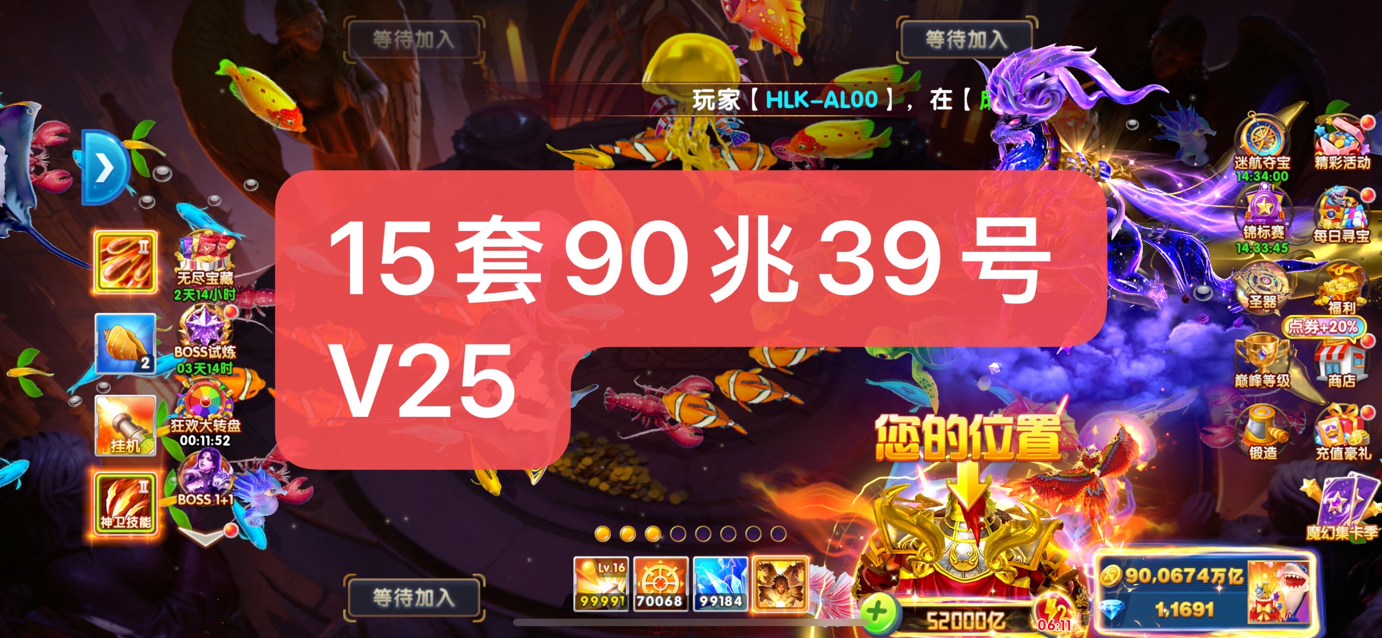 捕鱼大作战贵族25,机甲15级,金币90兆出租,破产回