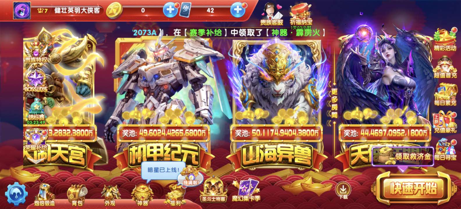 捕鱼大作战加成2023,冥斗士全部都有纯救济3.3兆有新战神