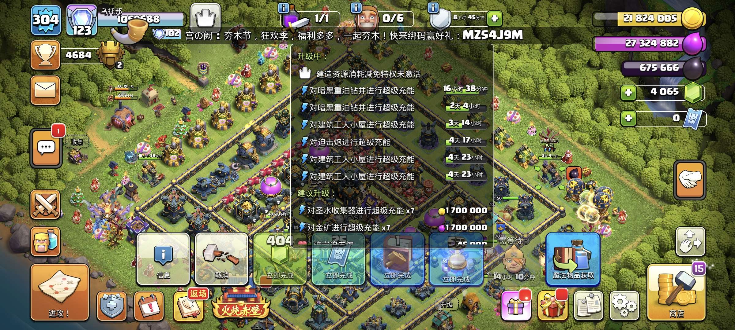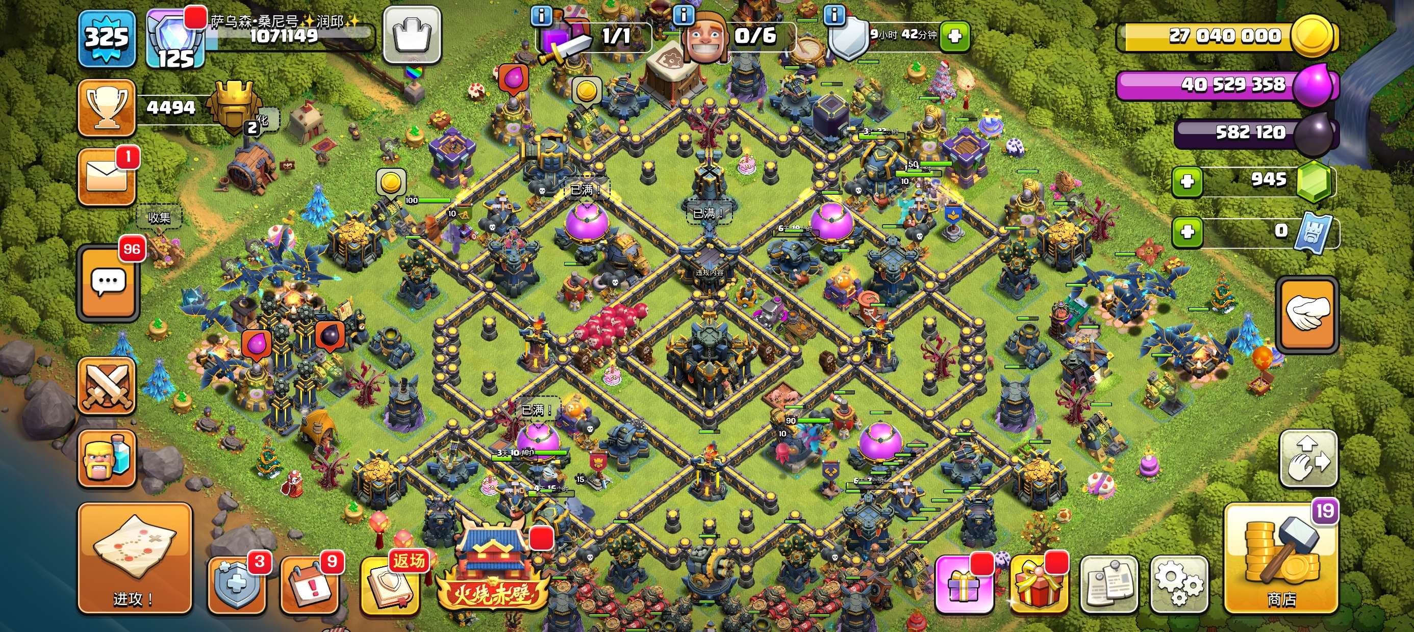 部落冲突【国际服】国际服16本未来套装✔8件史诗装备等级不错✔超高科技✔高王宠物等级✔多矿石道具✔夜世界快全满✔可换邮