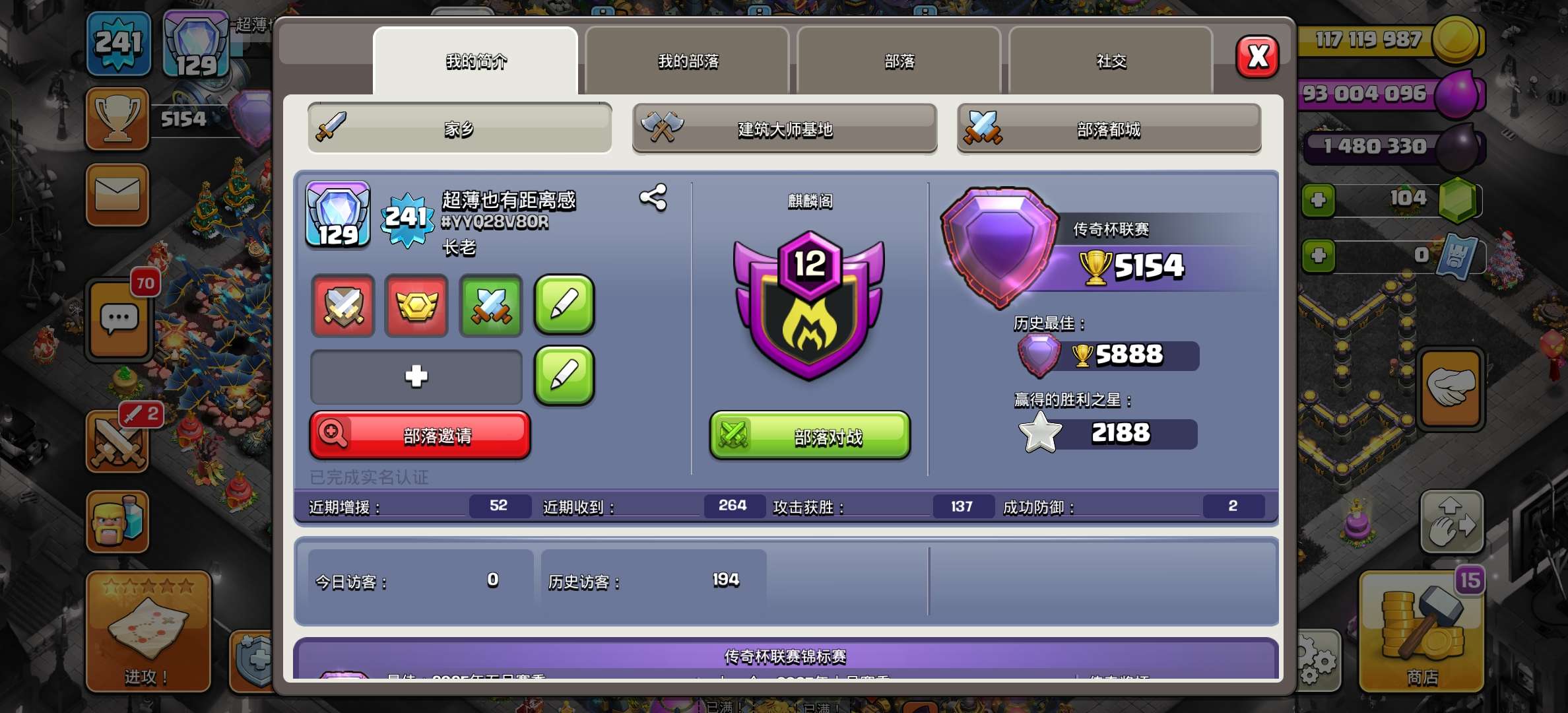 部落冲突【国际服】国际服17本重防御✔7史诗装备✔8级学徒8级助手5级术士✔夜世界满双王✔可换邮箱✔5折折扣号 30元