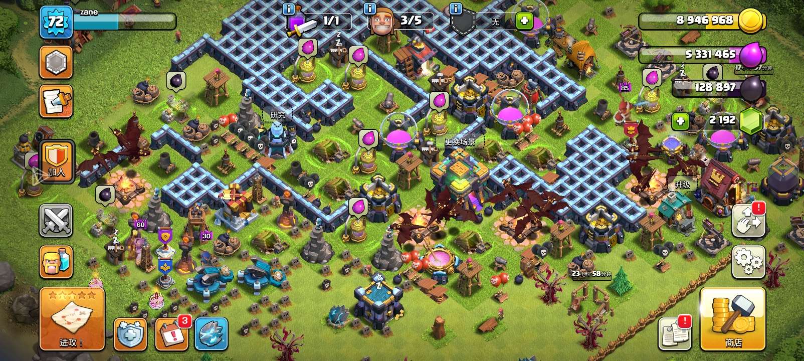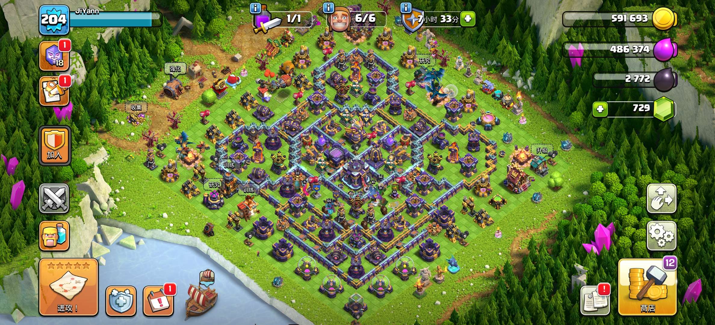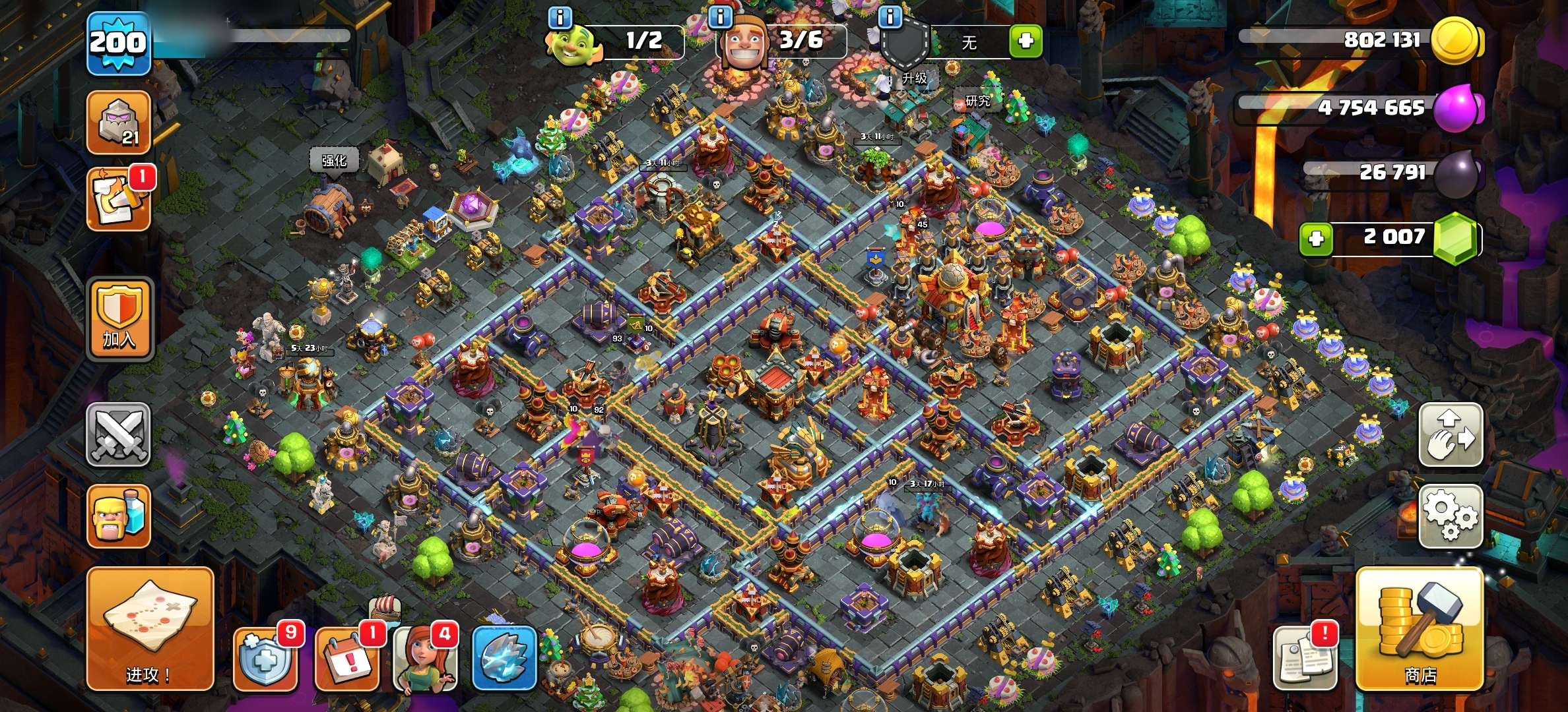部落冲突【安卓QQ】17全满,史诗九满,皮肤好看