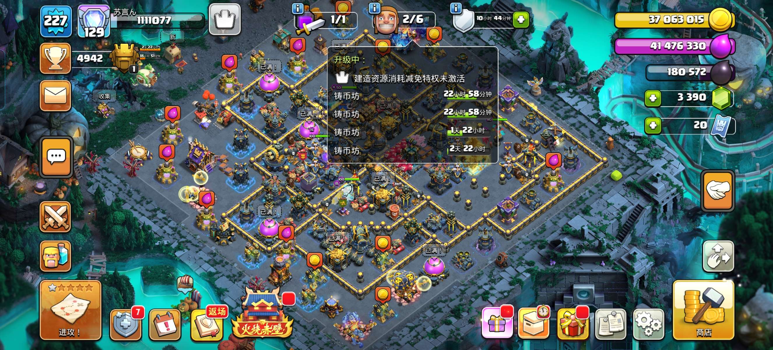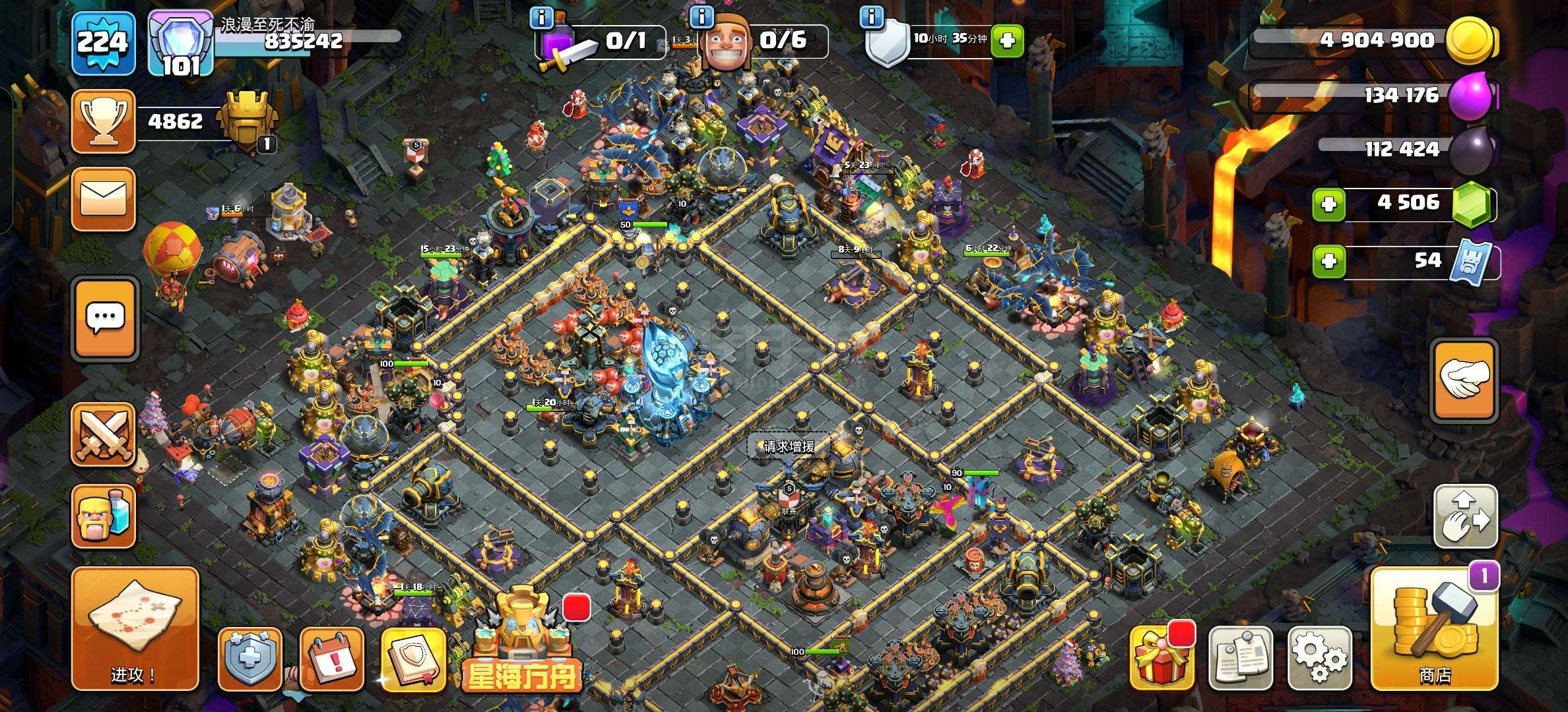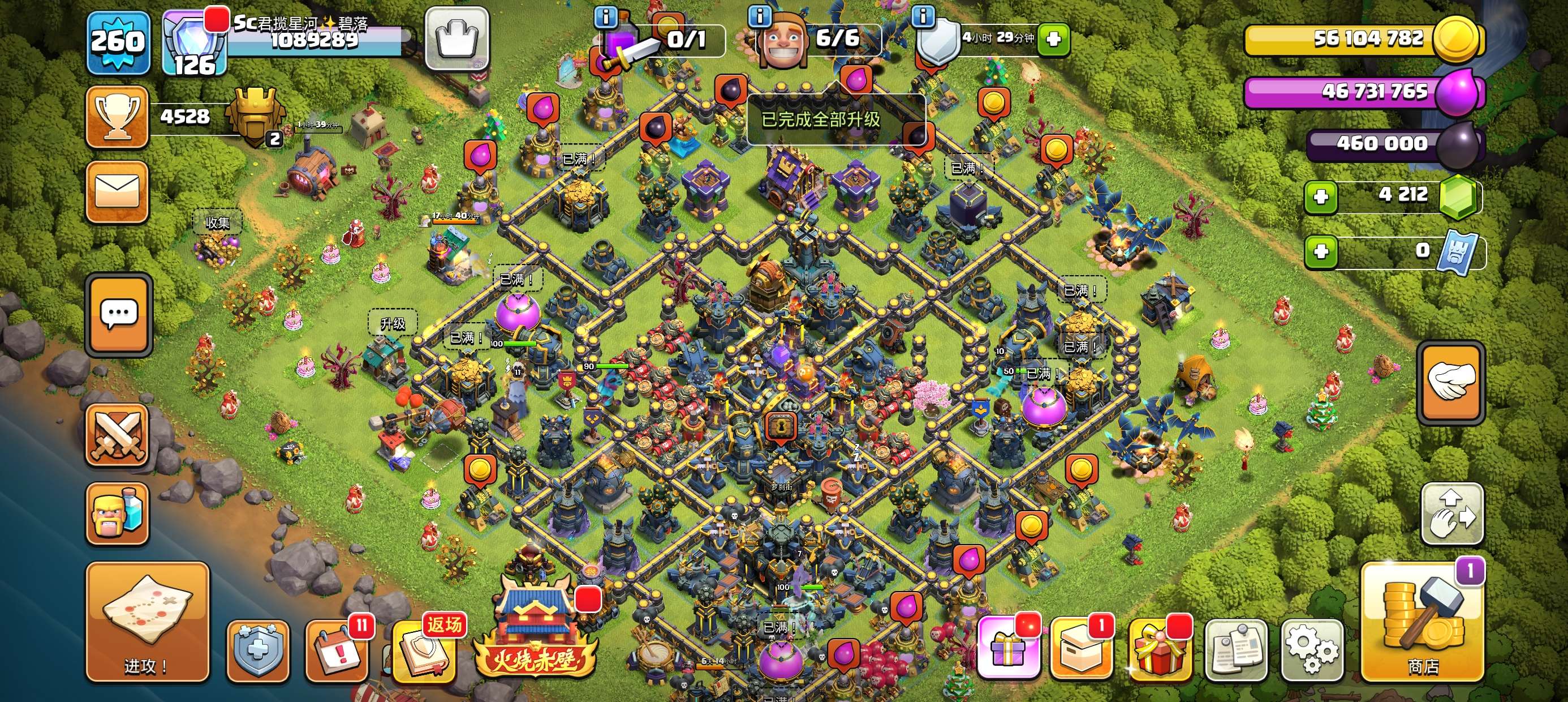 部落冲突【安卓微信】满王,满学徒,满墙,夜世界的王也全满了。