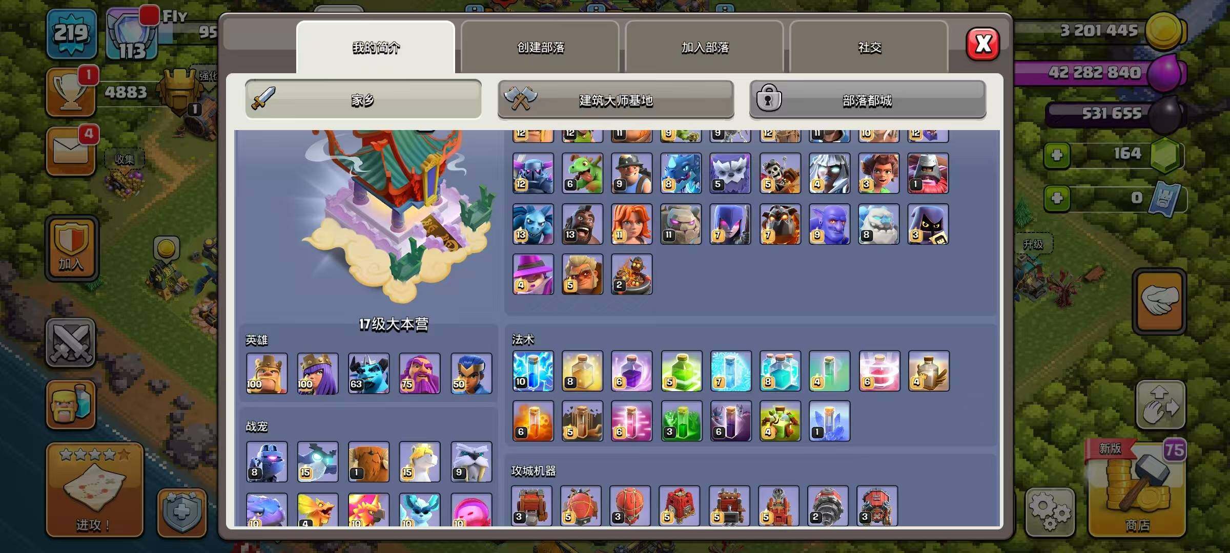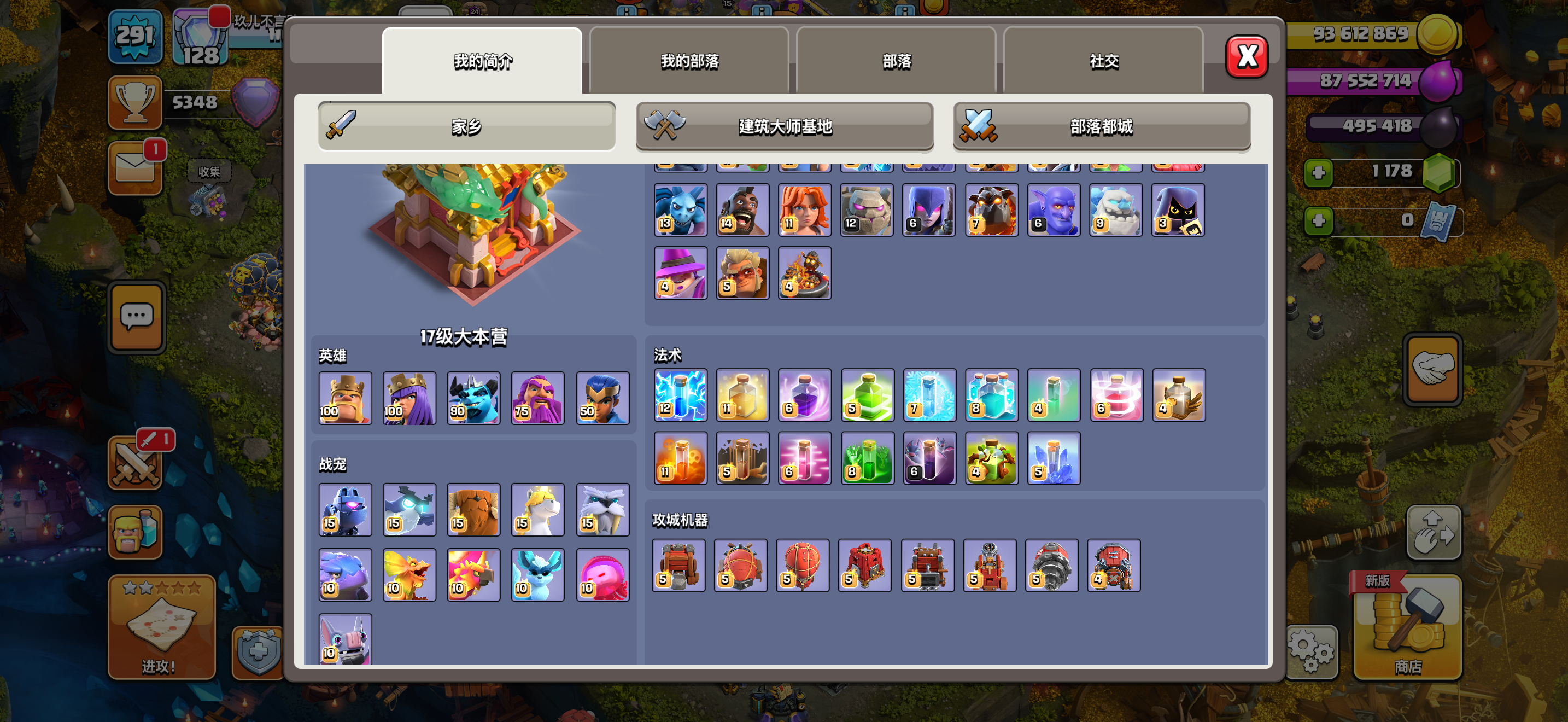 部落冲突【安卓官方】等级219/6农/英雄等级100-100-75-0