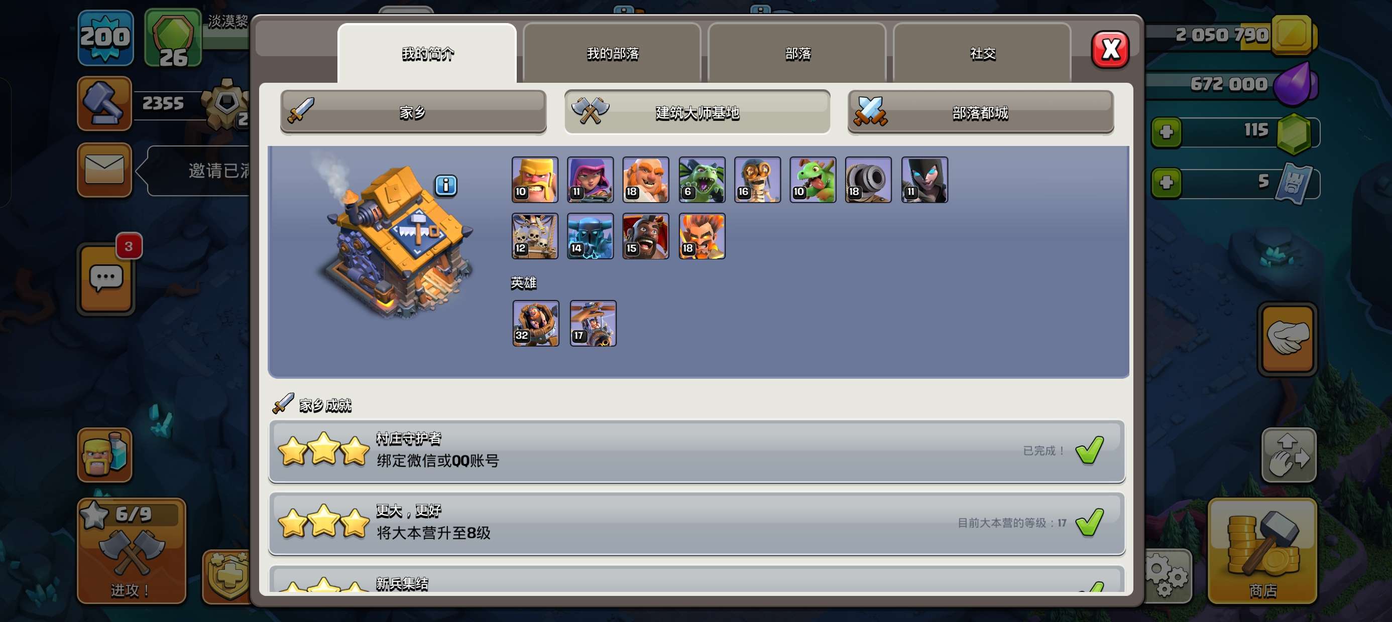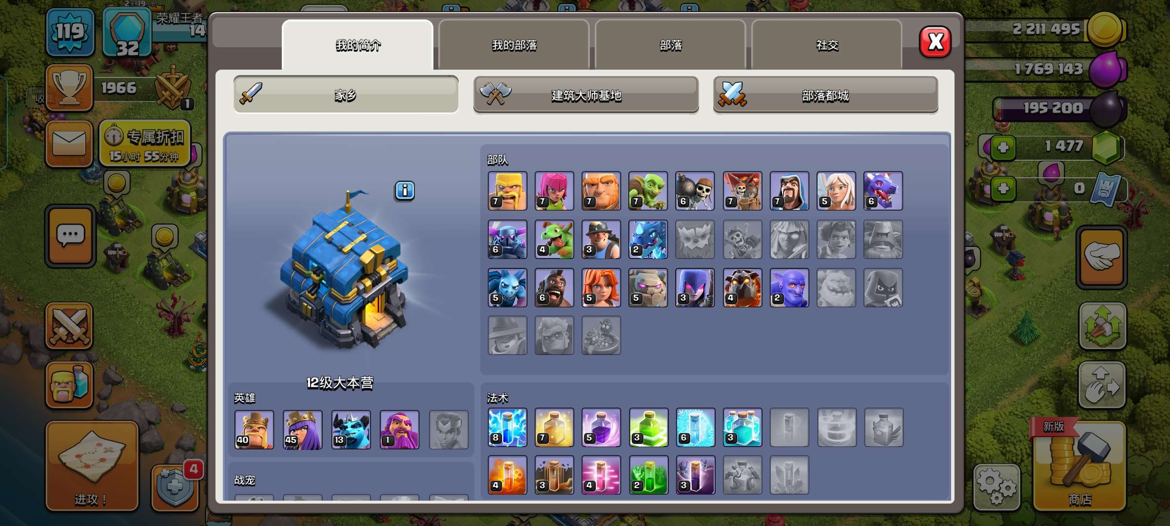 部落冲突【苹果QQ】快16本满房了宠物王的技能满级都有可以打