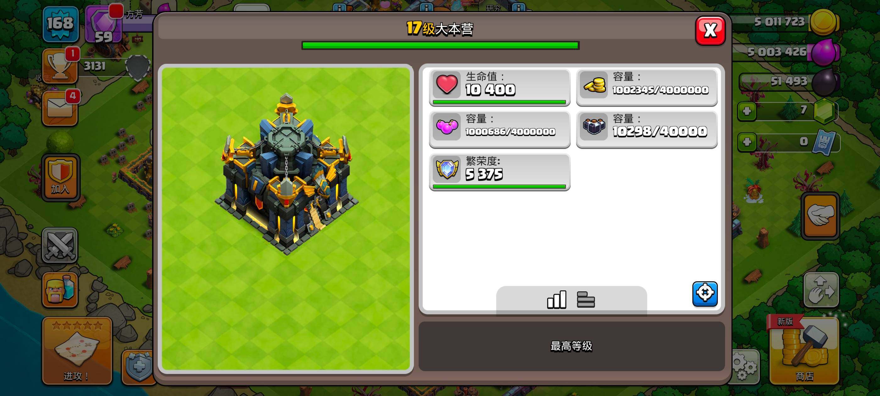 部落冲突【安卓QQ】十本/五工人后期*3000宝石