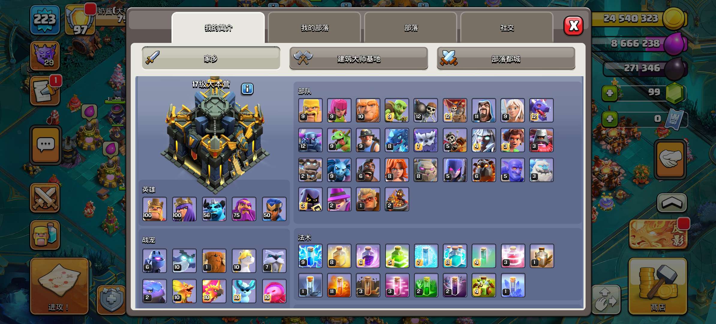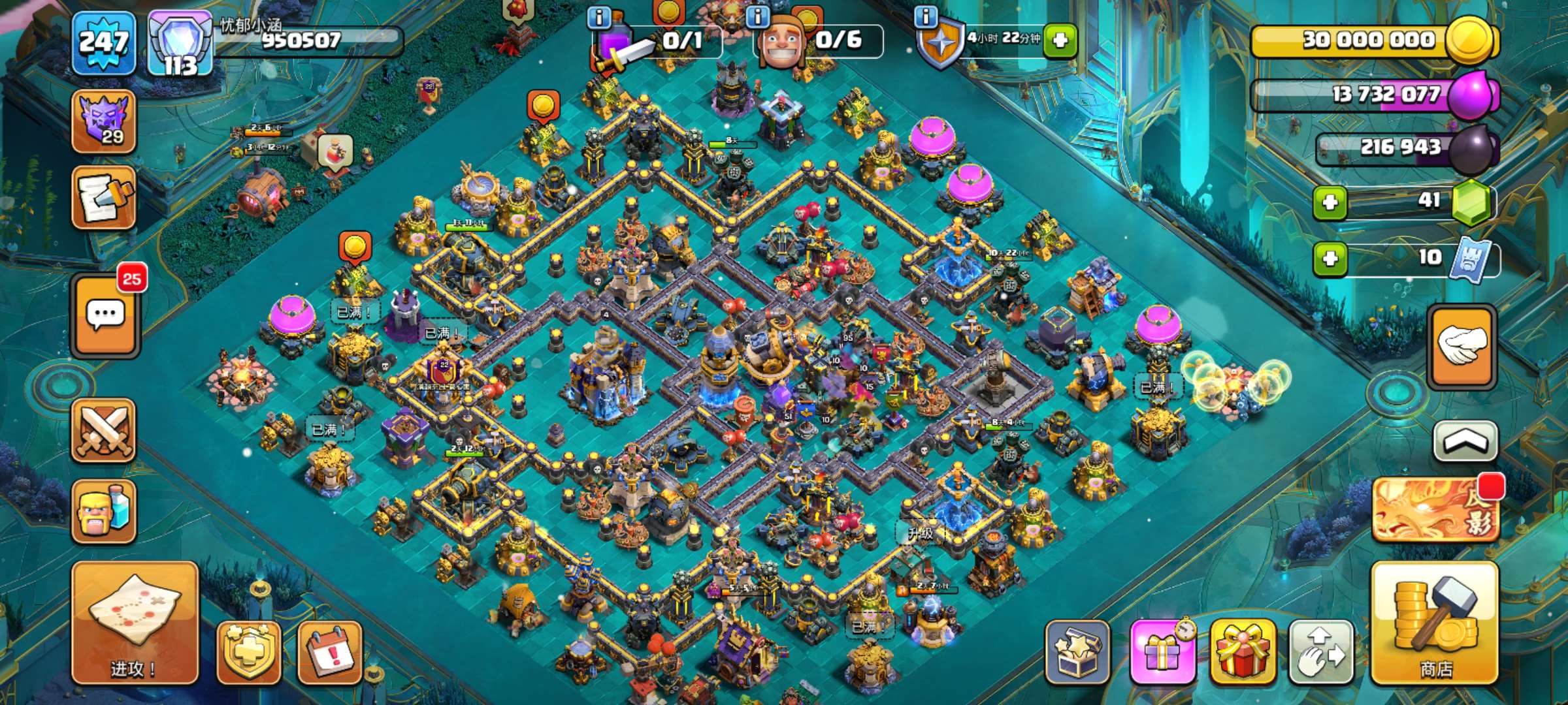 部落冲突国际服13本账号满墙高科技