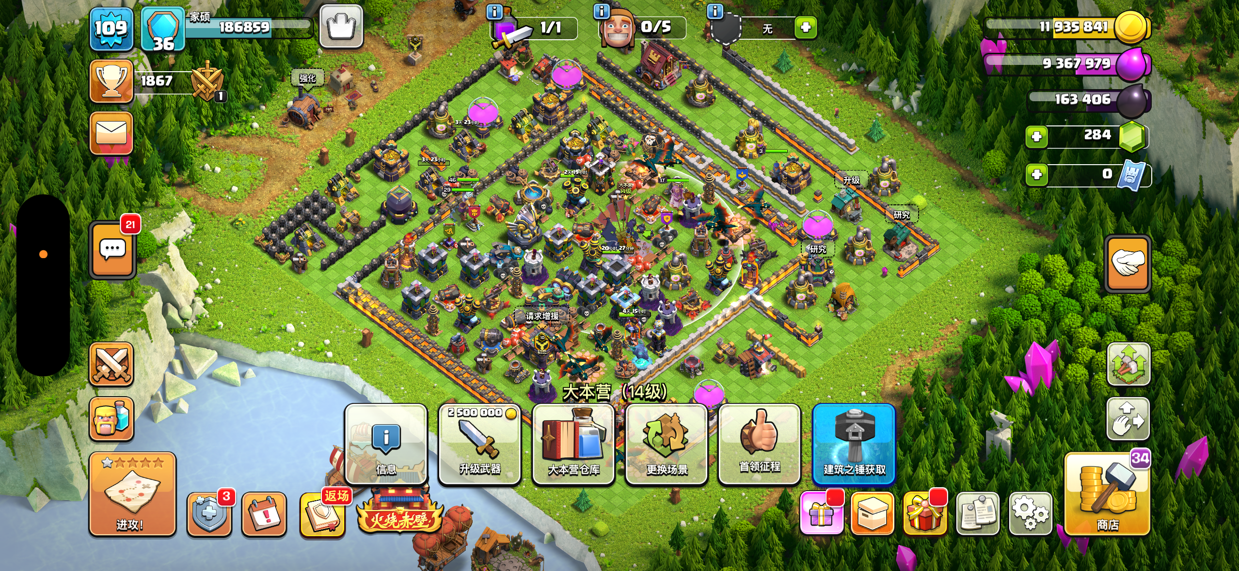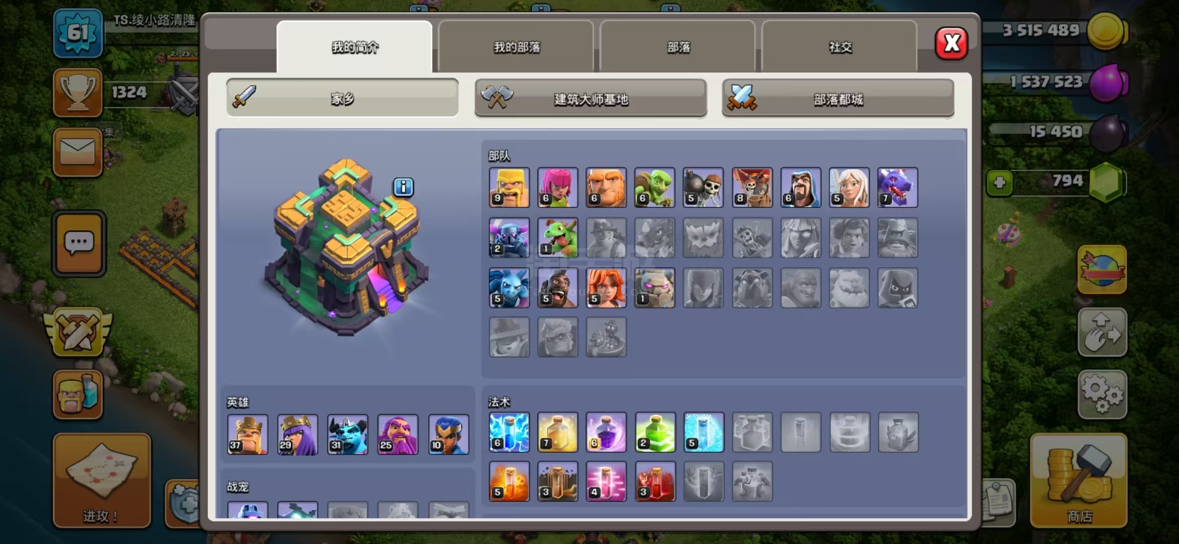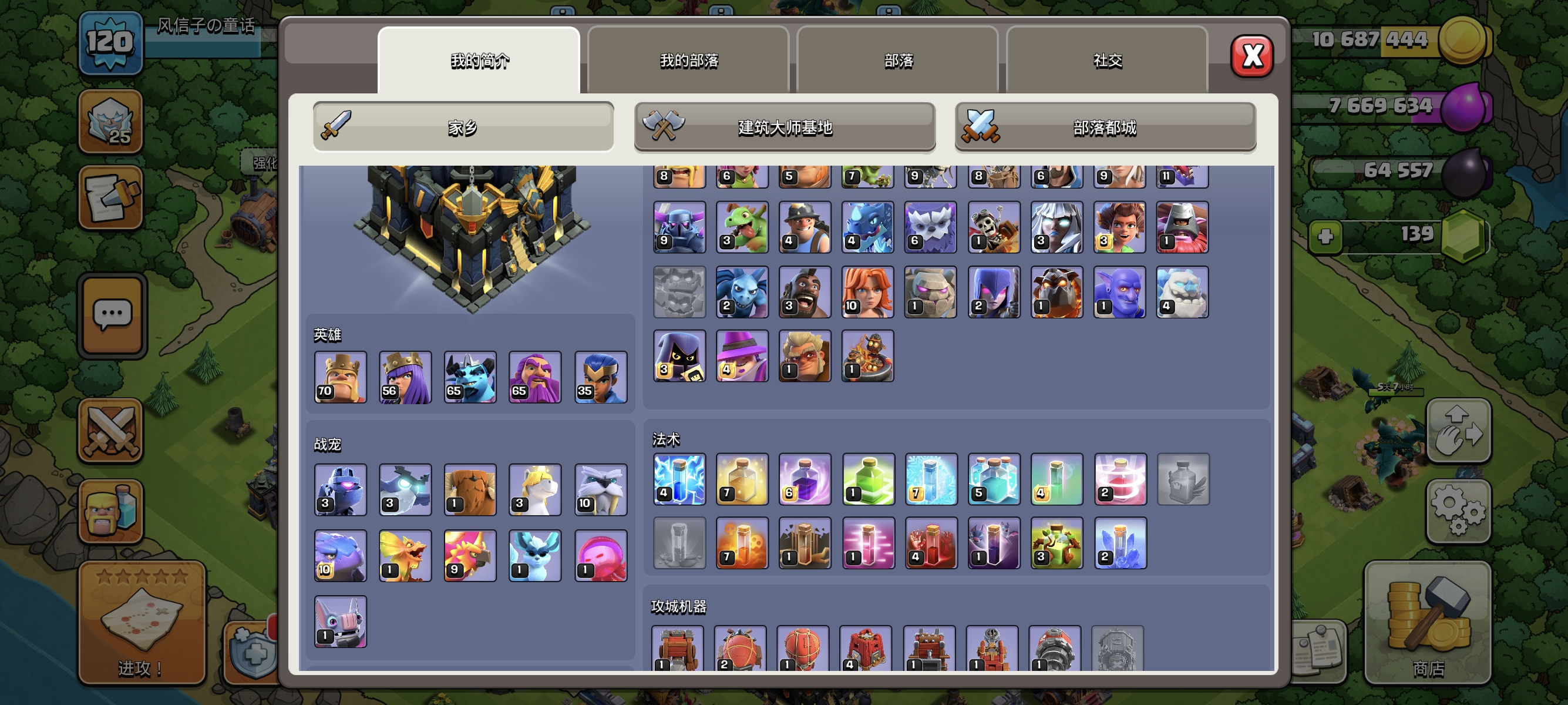 17本,除精品房外基本满防,兵种法术未满。多年老号,圣诞树,生日蛋糕。