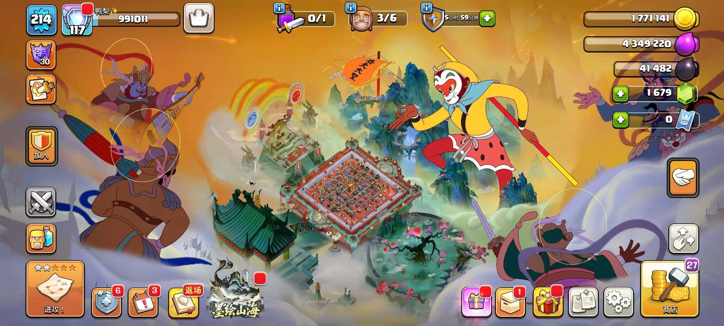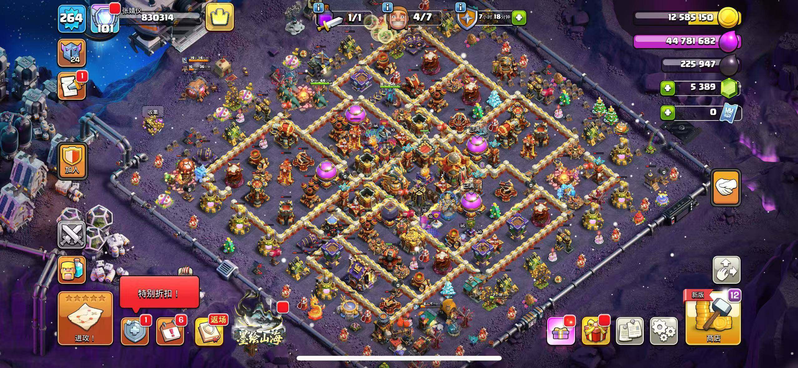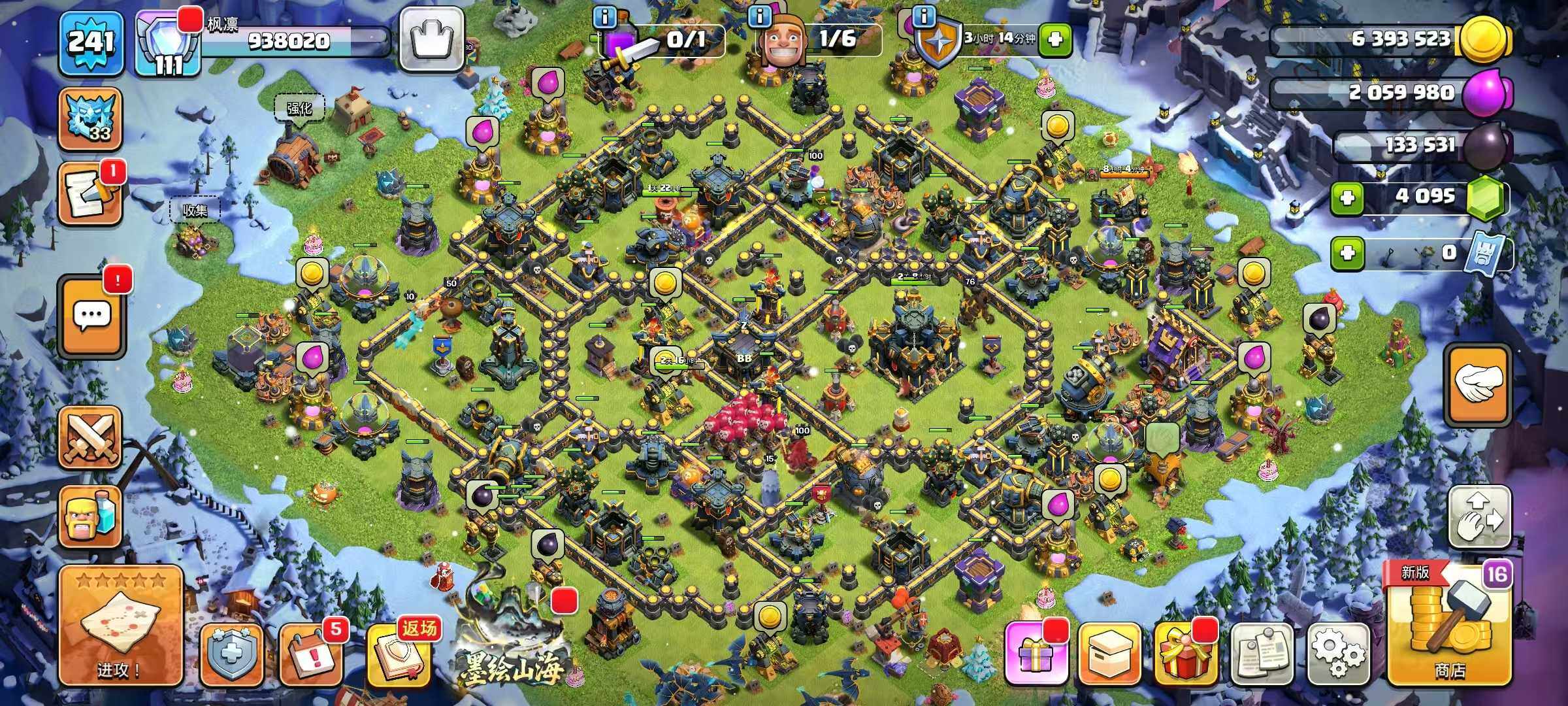 等级241/6农/英雄等级100-100-75-50/海上基地/冰天雪地/原始秘地/部落工坊/狂野丛林/像素世界/皇家竞技场/哥布林洞