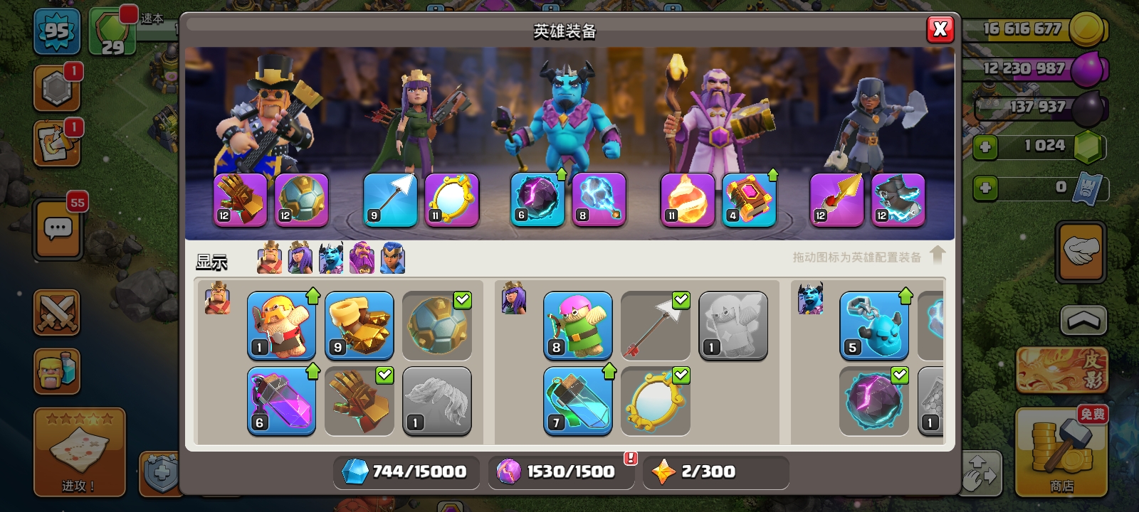 等级187/7王皮/8场景/6农/英雄等级57-80-45-58/像素蛮王