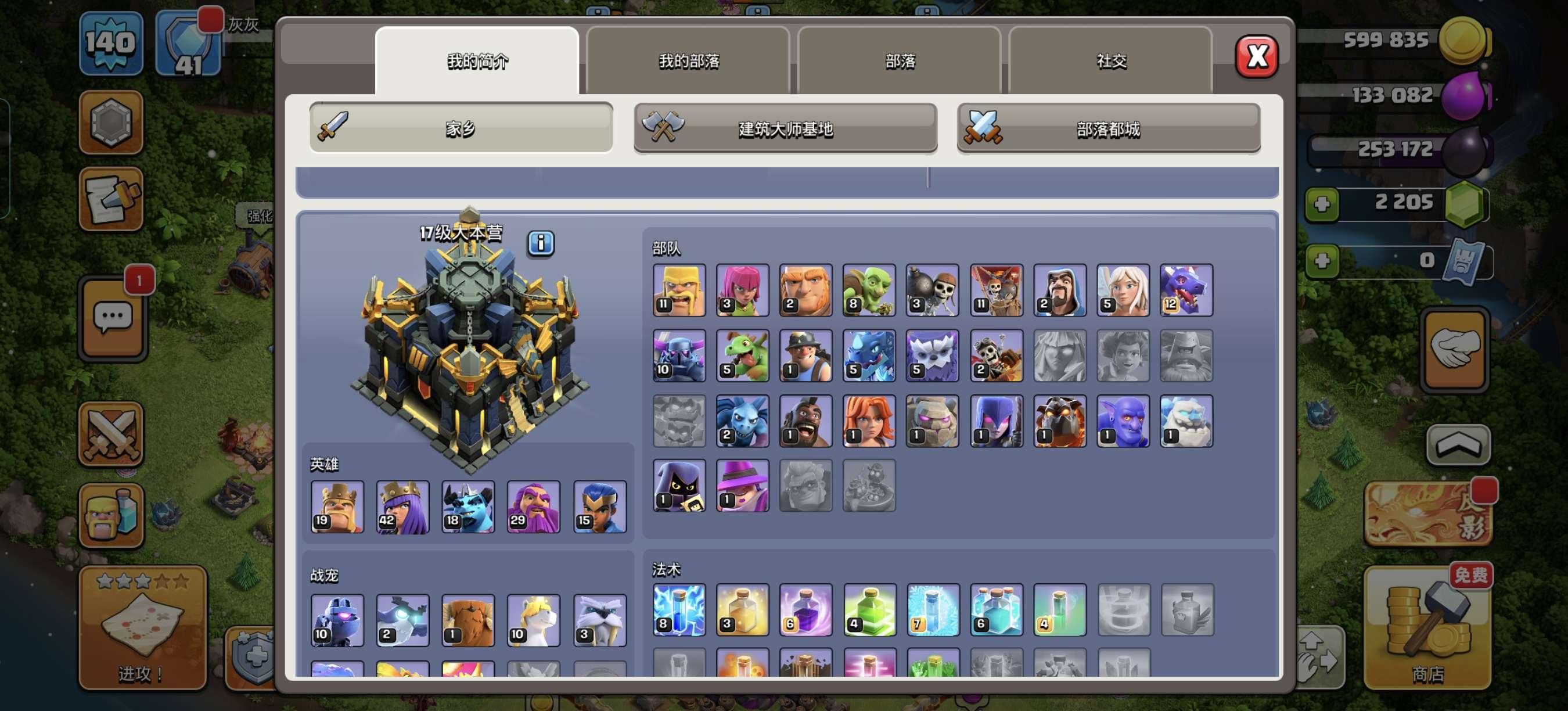 部落冲突国服安卓QQ,17本,宝石11000+,