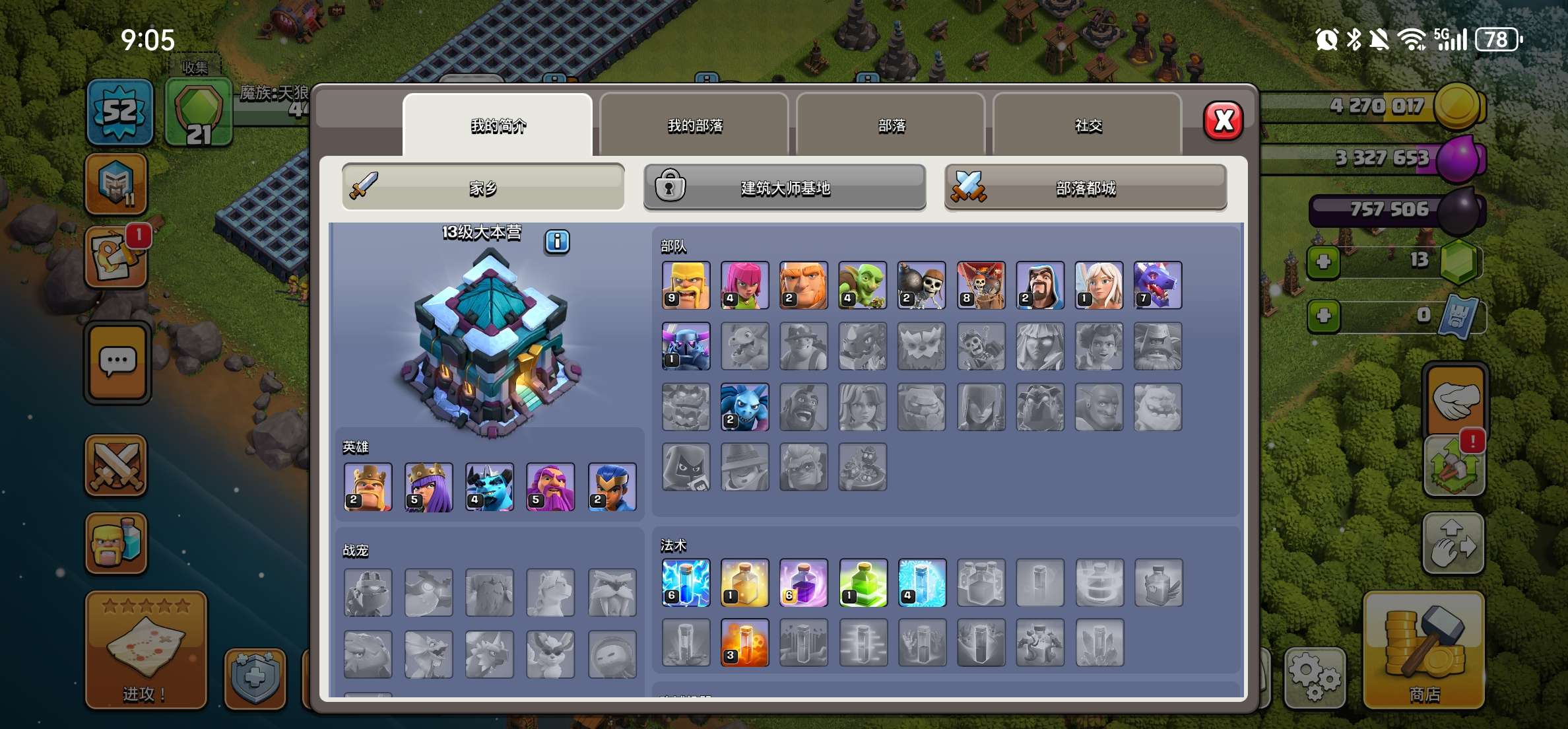 部落冲突国服安卓QQ,16本,宝石12000+,5农